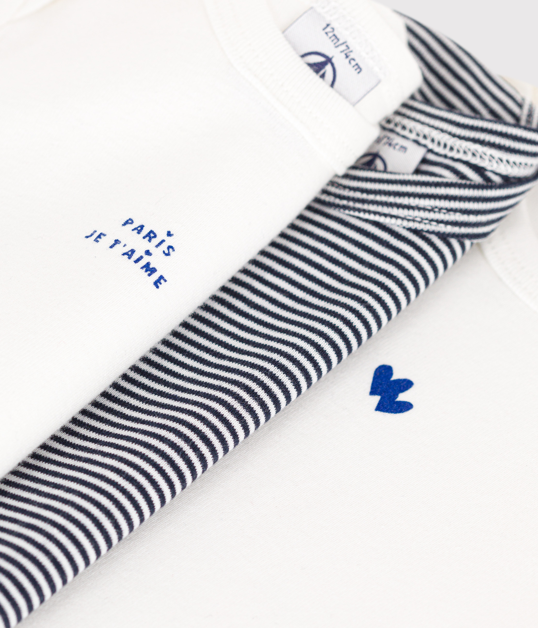 عبوة من 3 بوديسوت للرضع الأطفال الجديدة بأكمام طويلة وبنمط Petit Bateau المضلع الشهير.