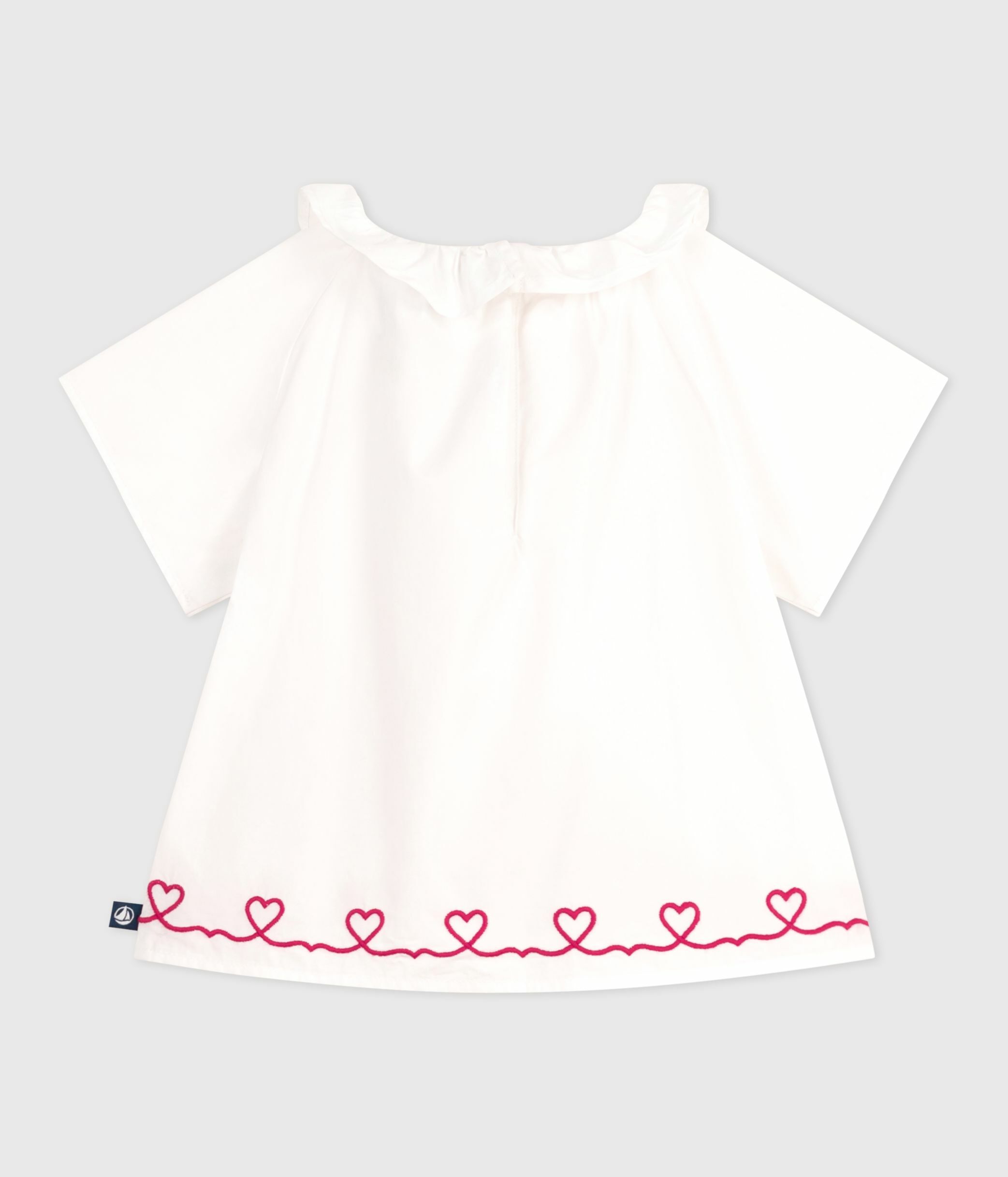 بلوزة بأكمام قصيرة للأطفال من البوبلين القطني مزينة بقلوب مطرزة