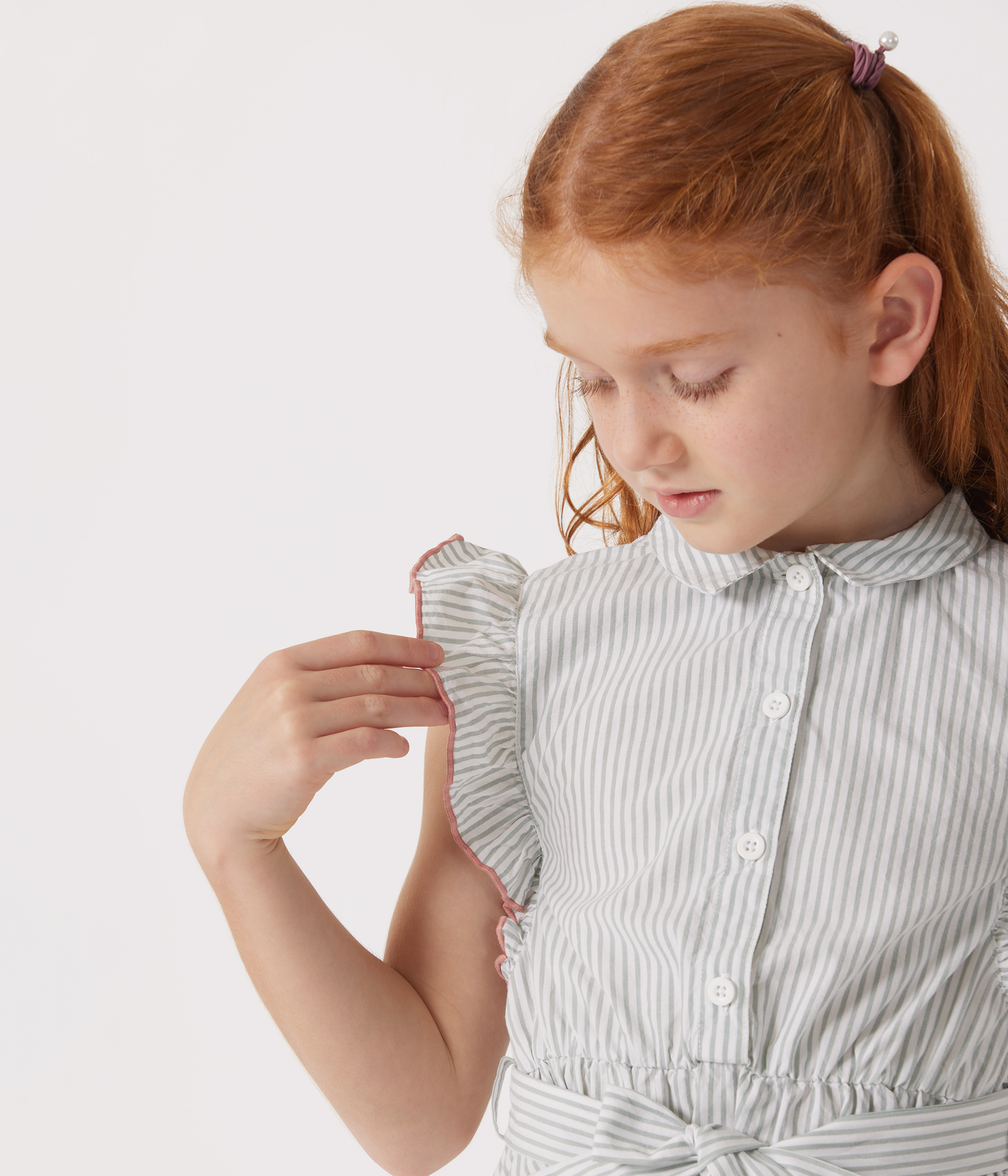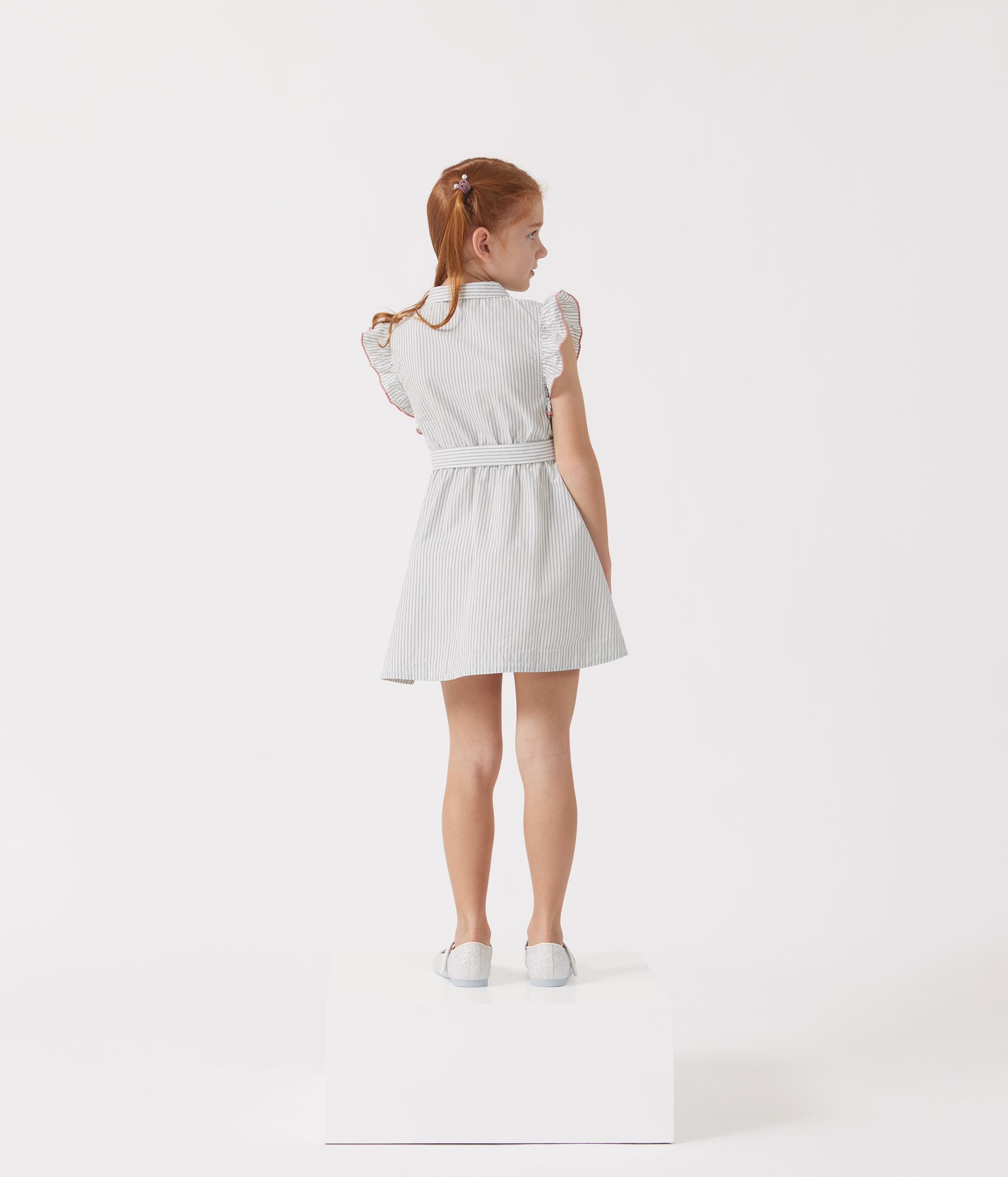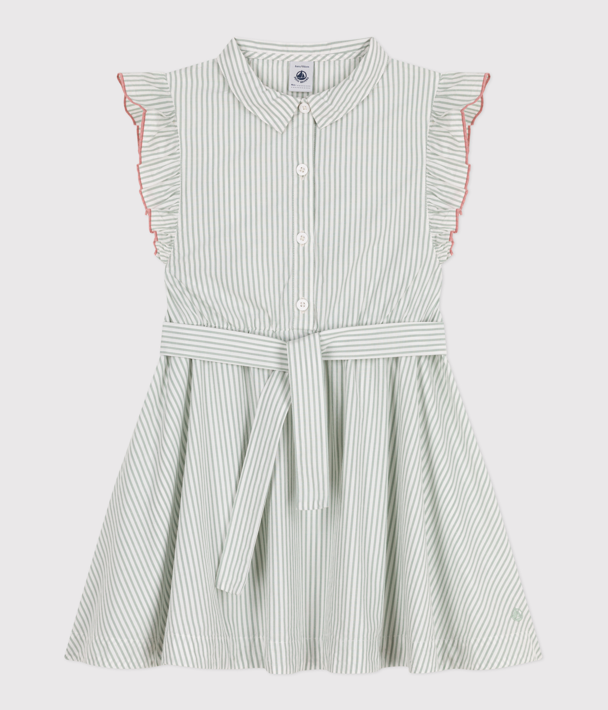 فستان للبنات بدون أكمام من البوبلين بنمط مخطط، يتميز بقماش ناعم وخفيف الوزن.