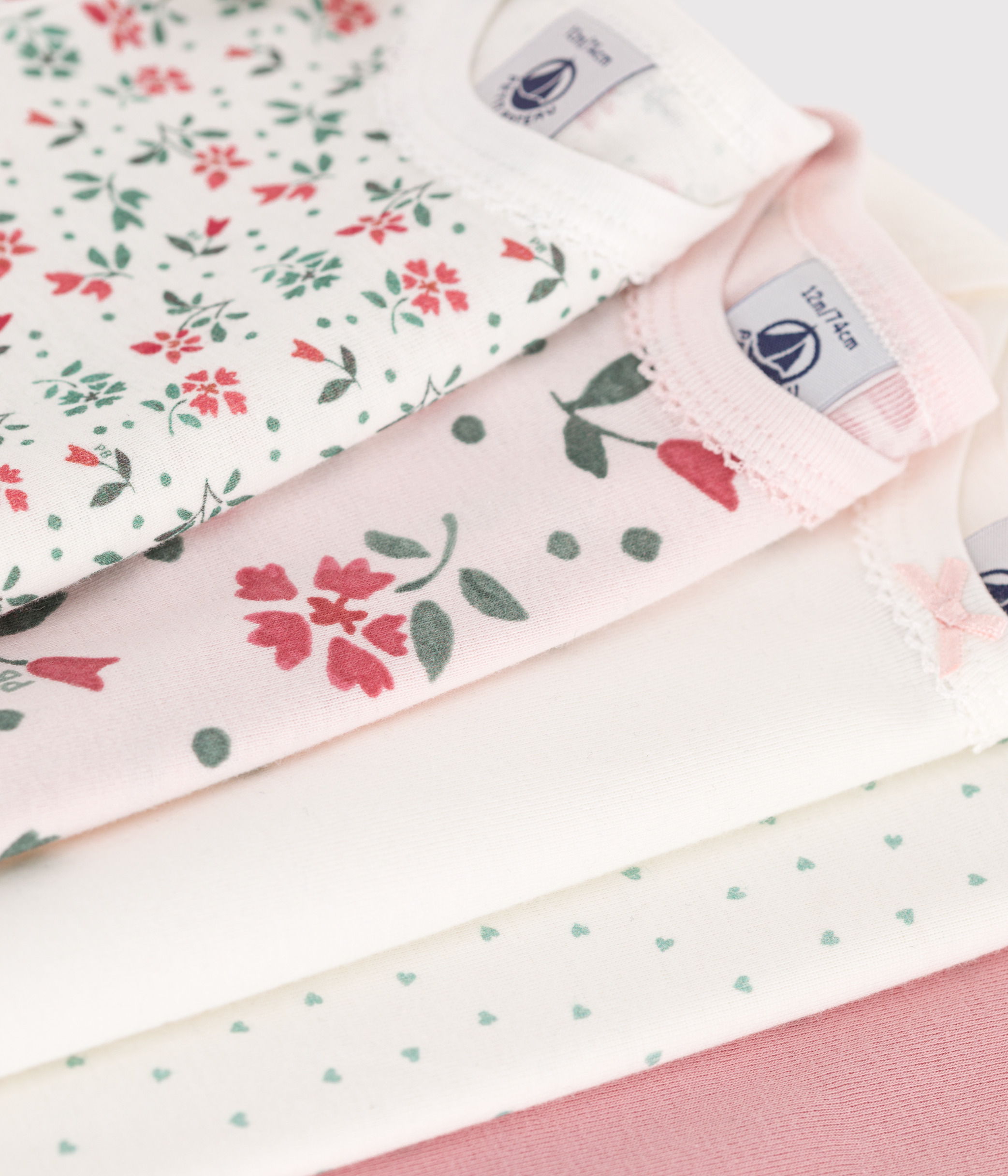 مجموعة من 5 بدلات قطنية بأكمام قصيرة بنقشة زهور للرضع