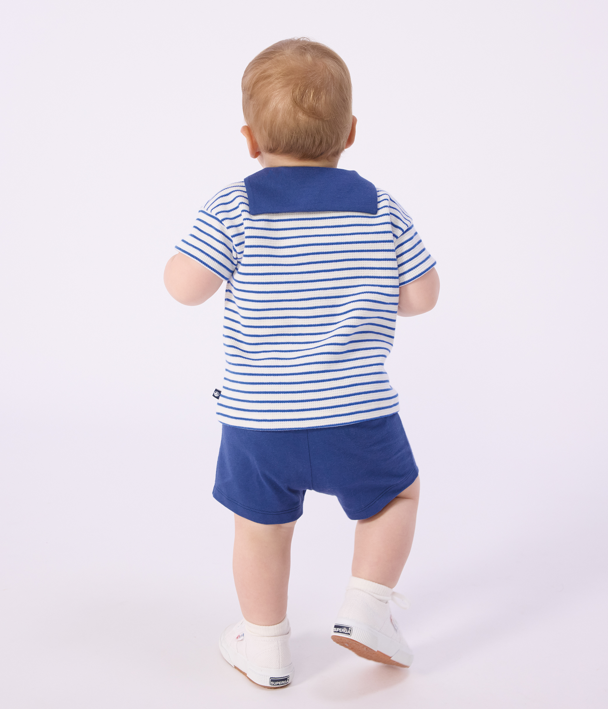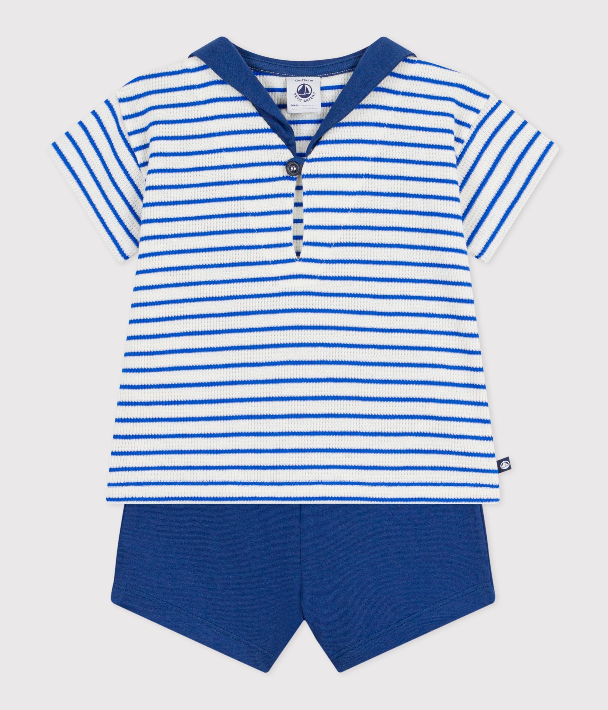 Babies' 2-piece cotton outfit, the T-shirt top has a sailor collar