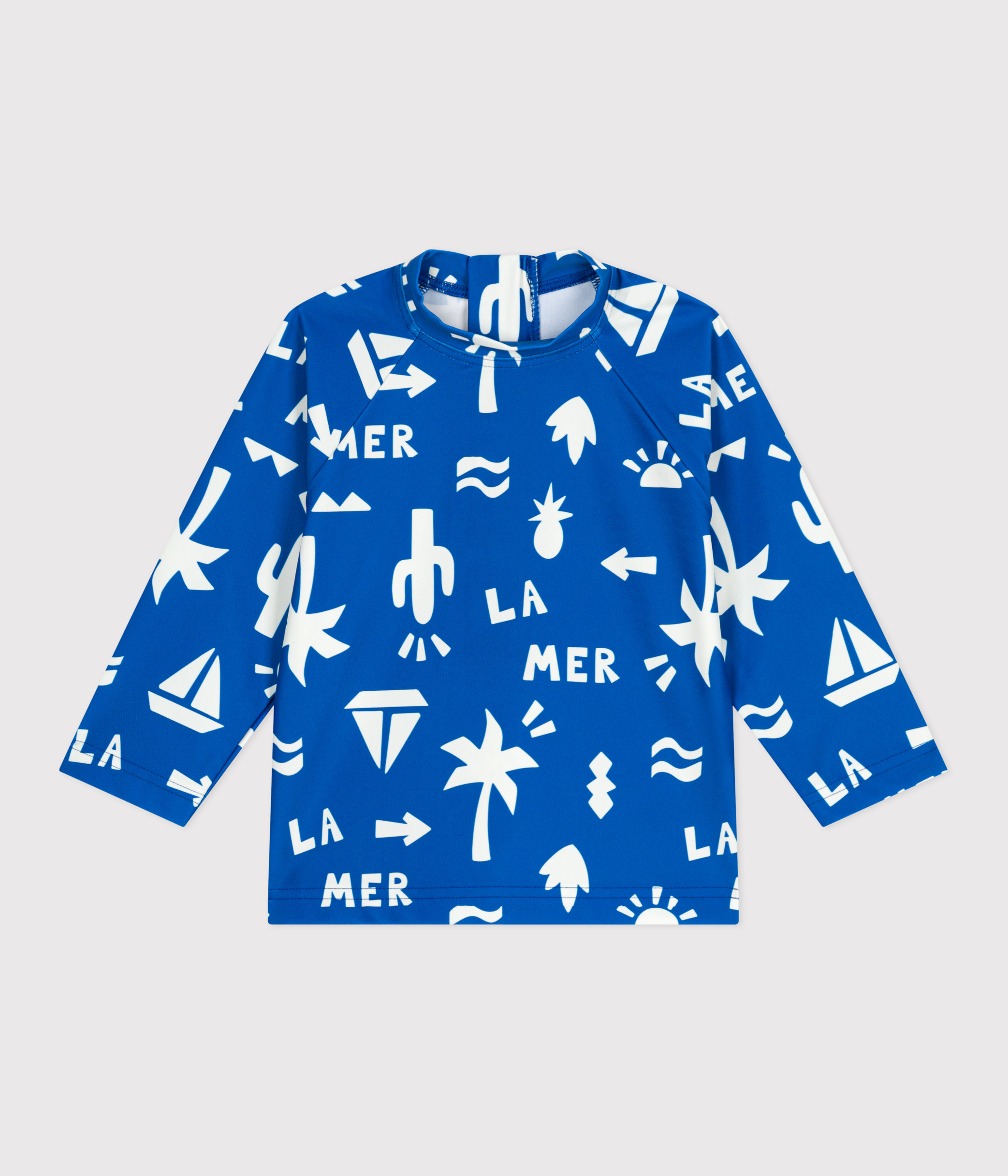 Boys' long-sleeved polyamide swim T-shirt with a high neck.