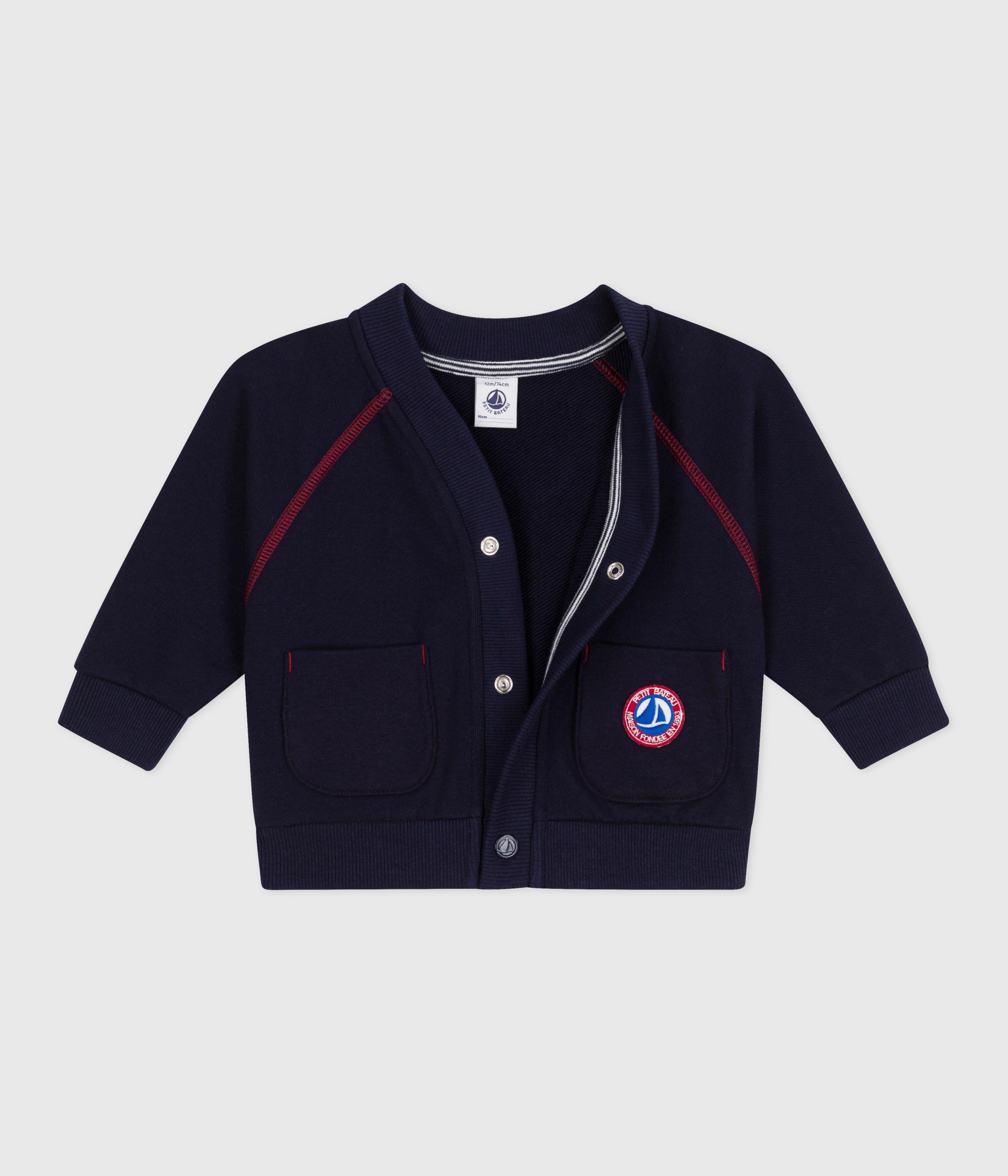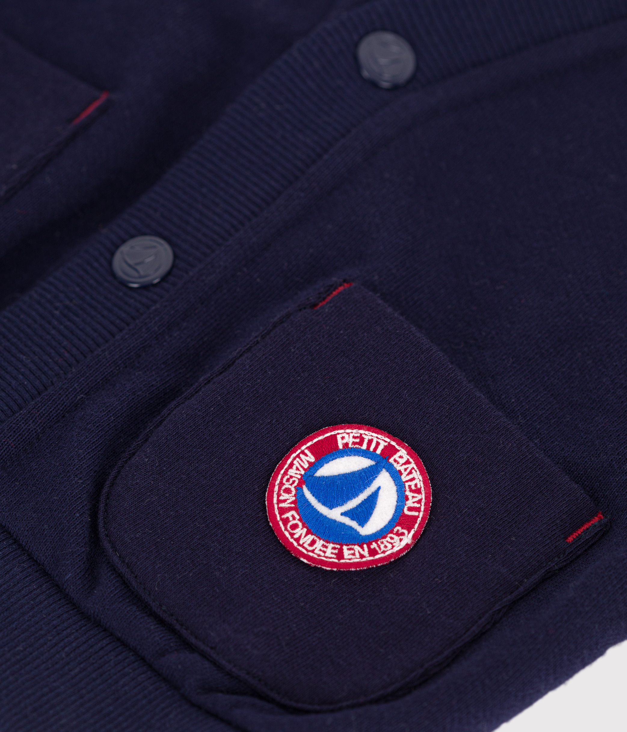 Boys' cardigan in fleece, a soft, comfortable fabric ideal for winter.