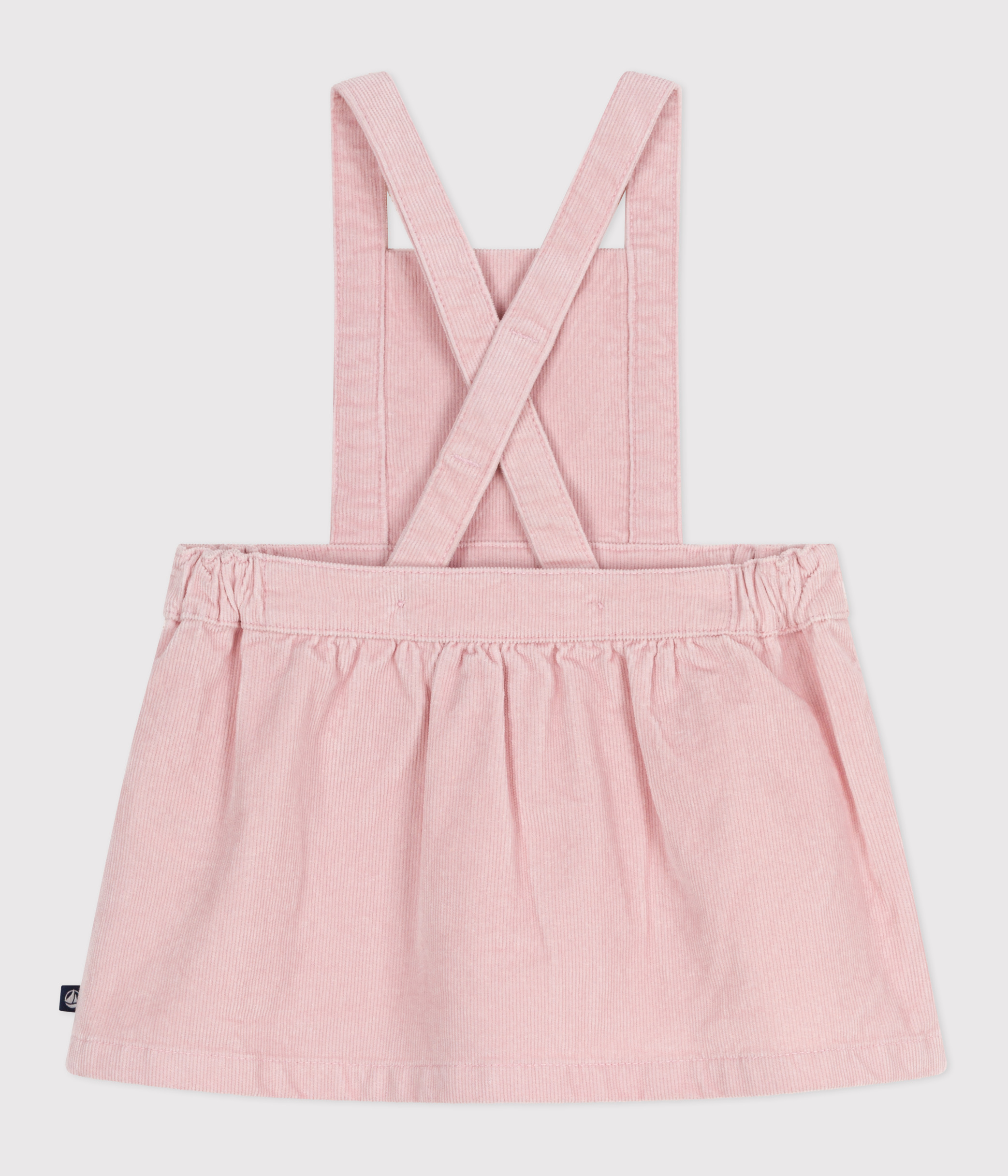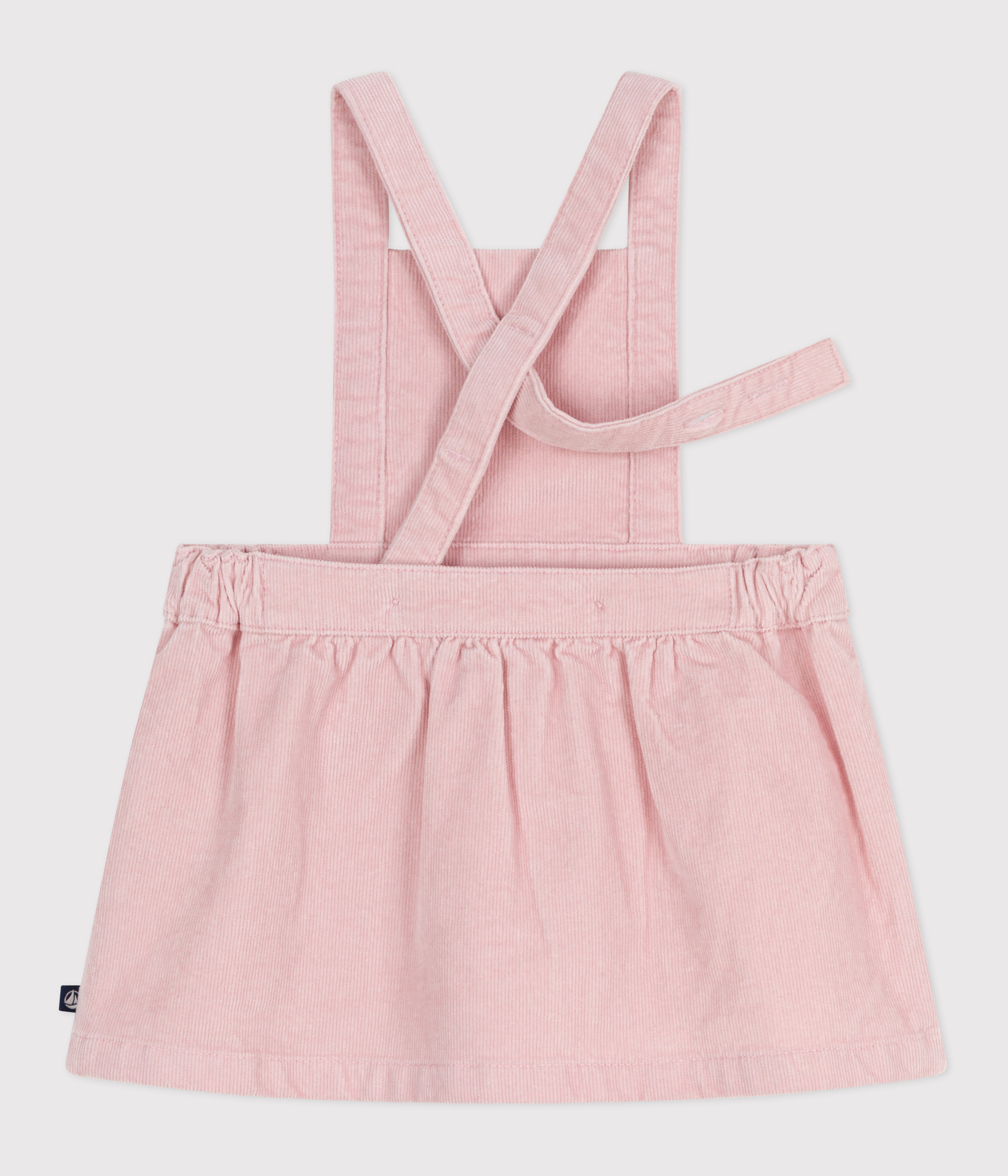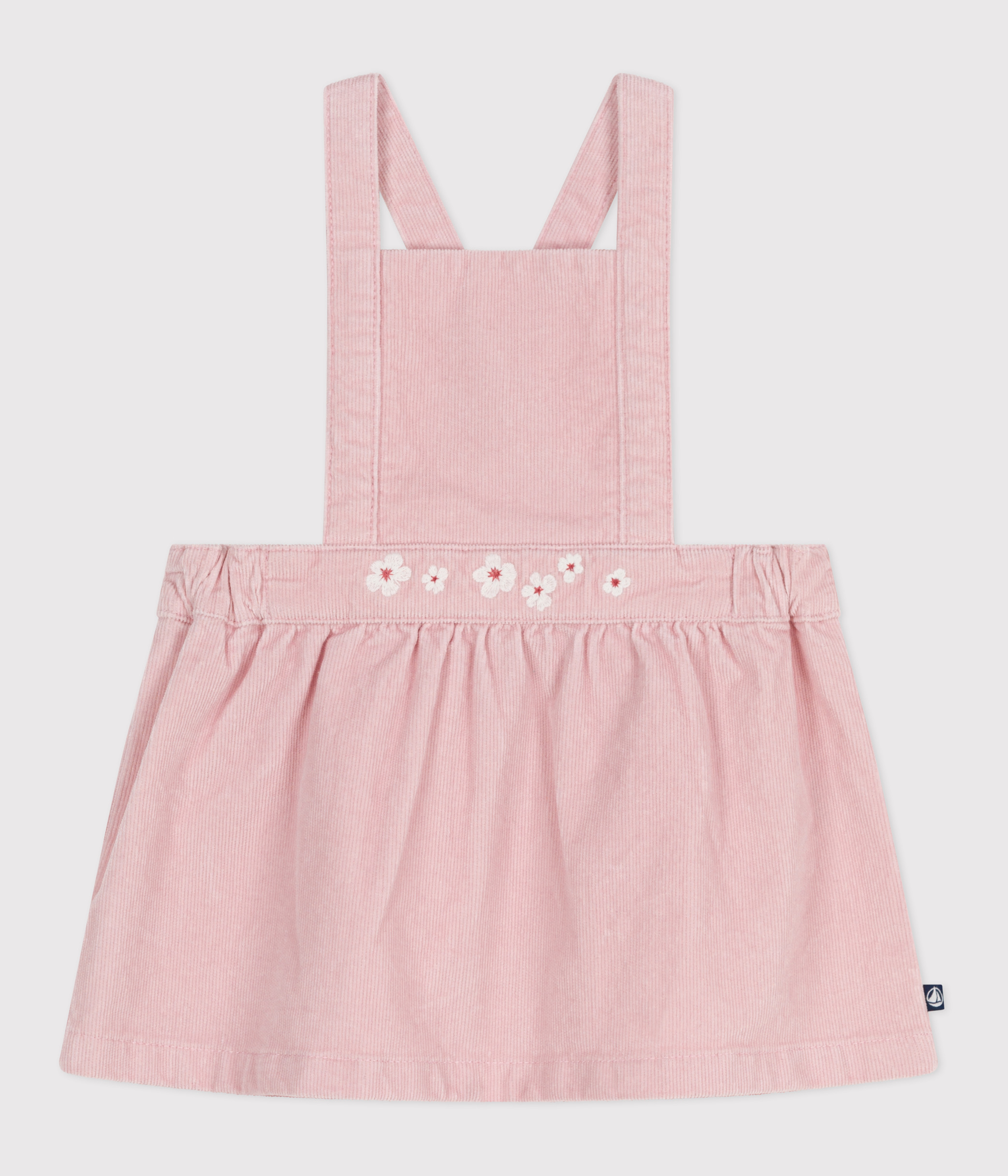 Babies' dress in corduroy embroidered with flowers on the waistband