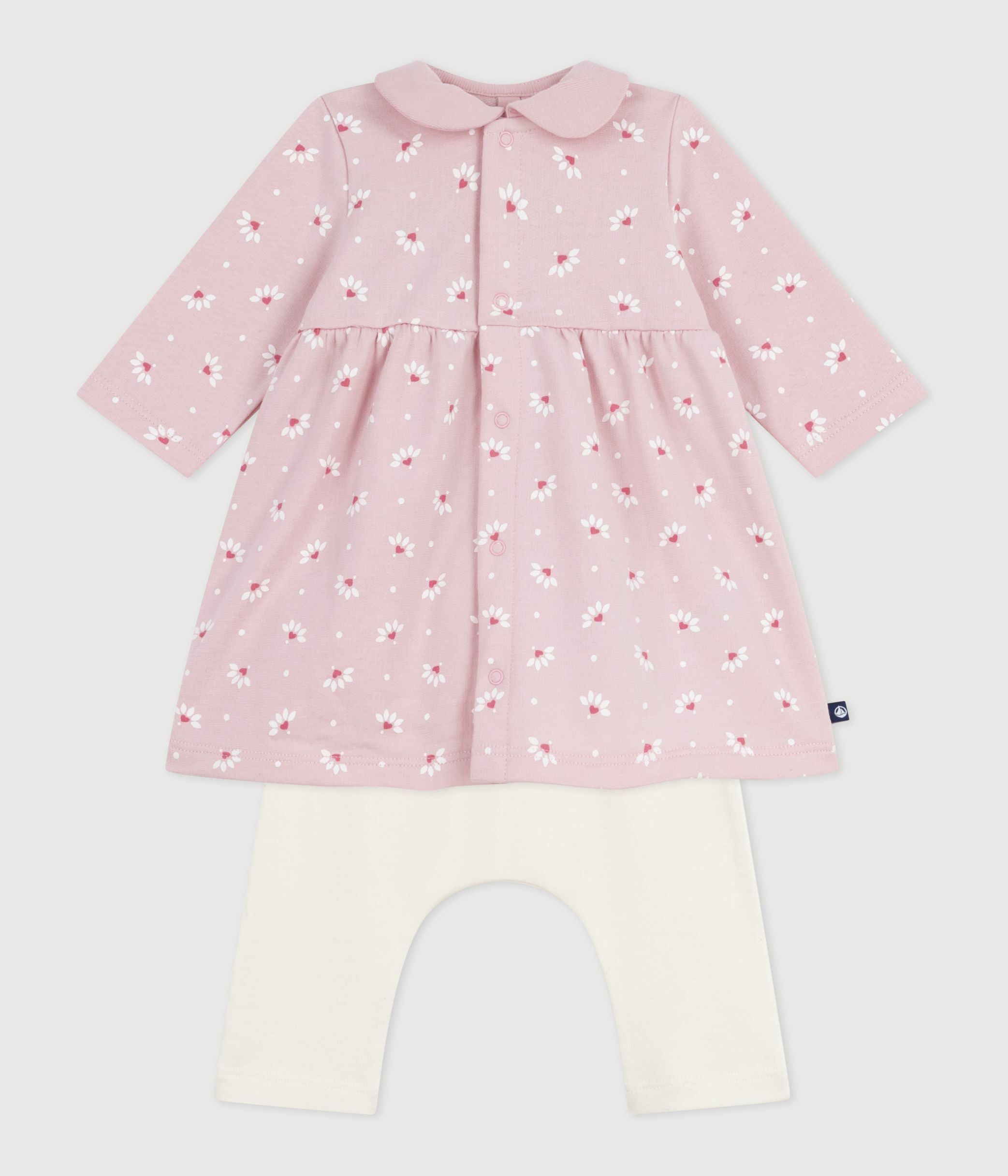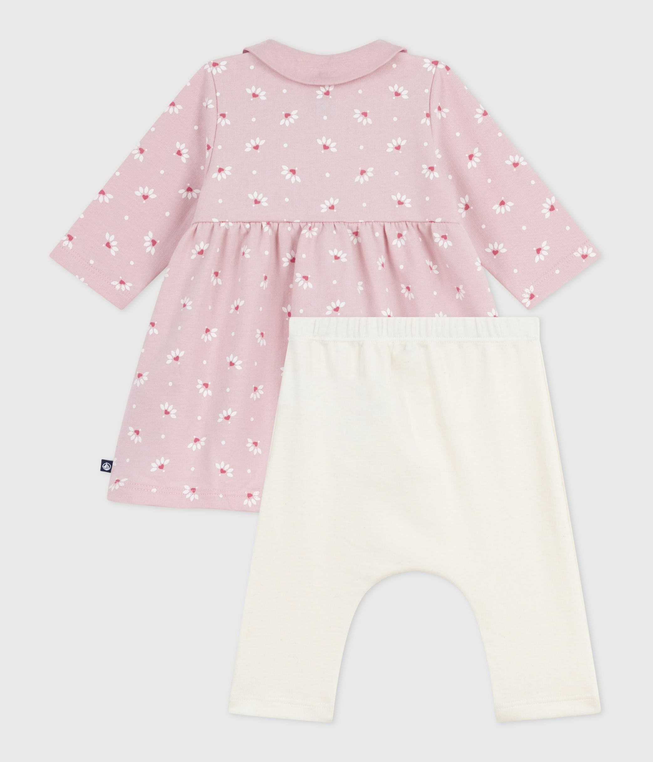 Babies' dress with a collar, printed with hearts and flowers, and leggings in cotton