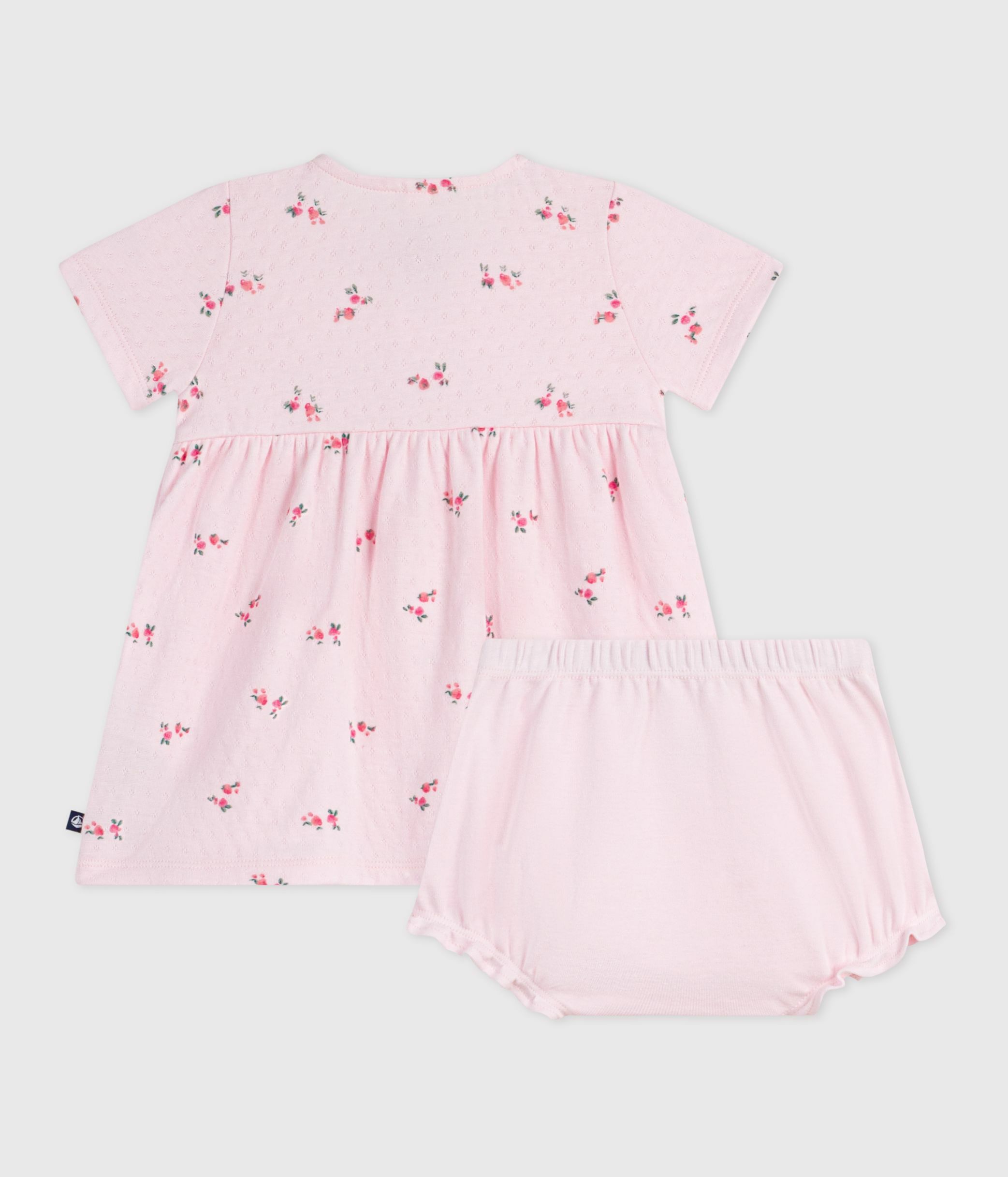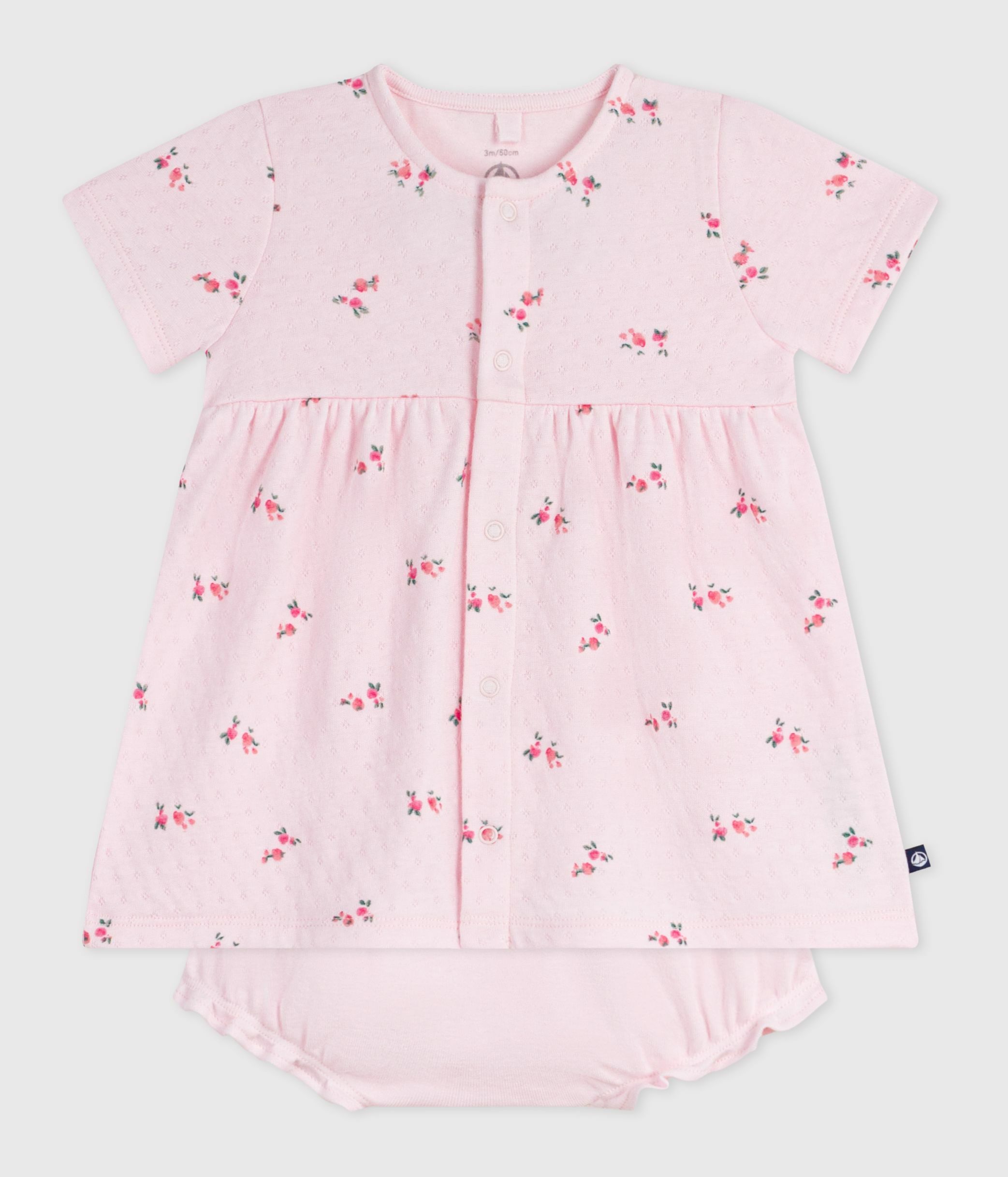 Babies' flower-printed cotton dress with matching bloomers
