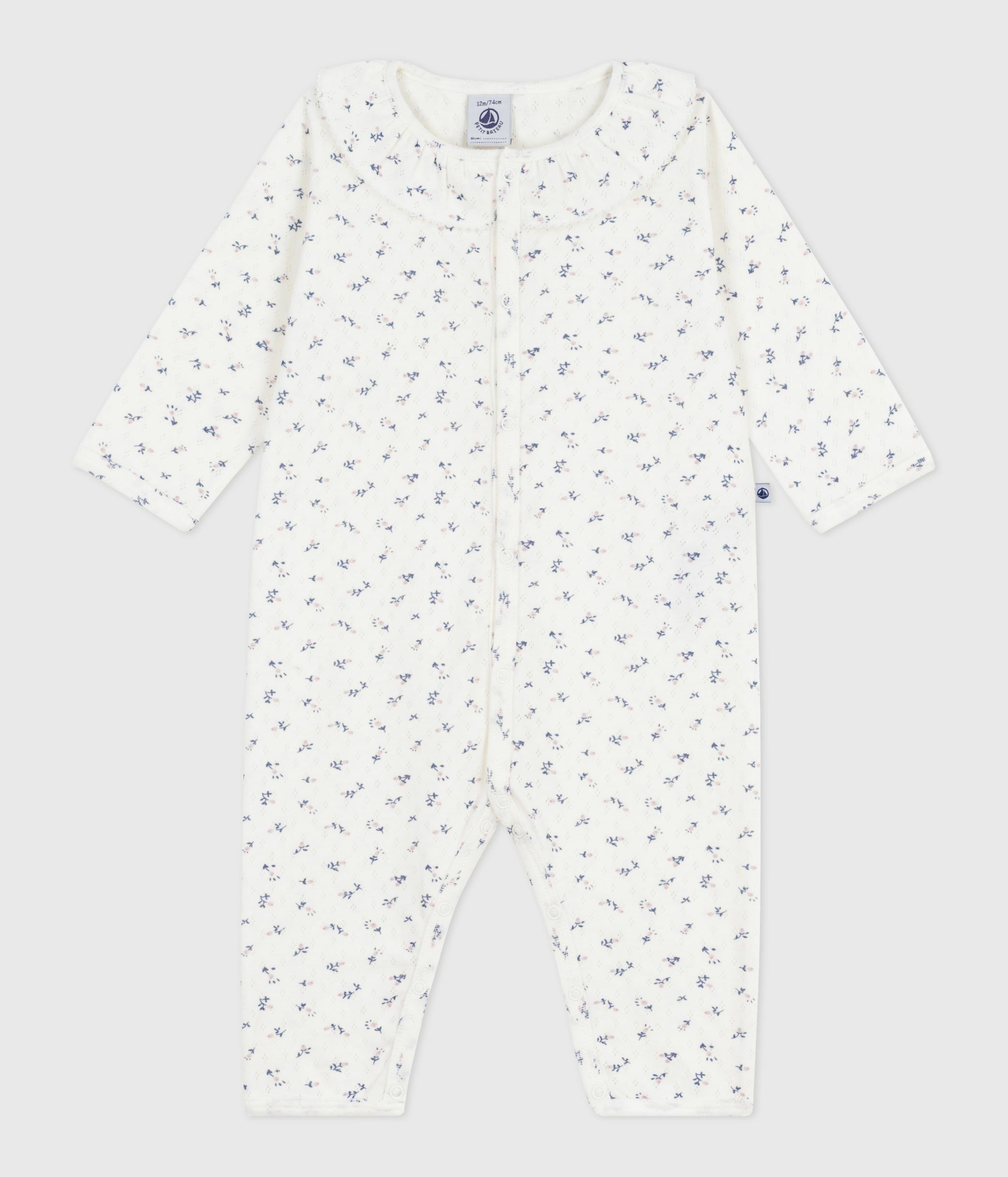Babies' footless openwork floral-print cotton pyjama suit