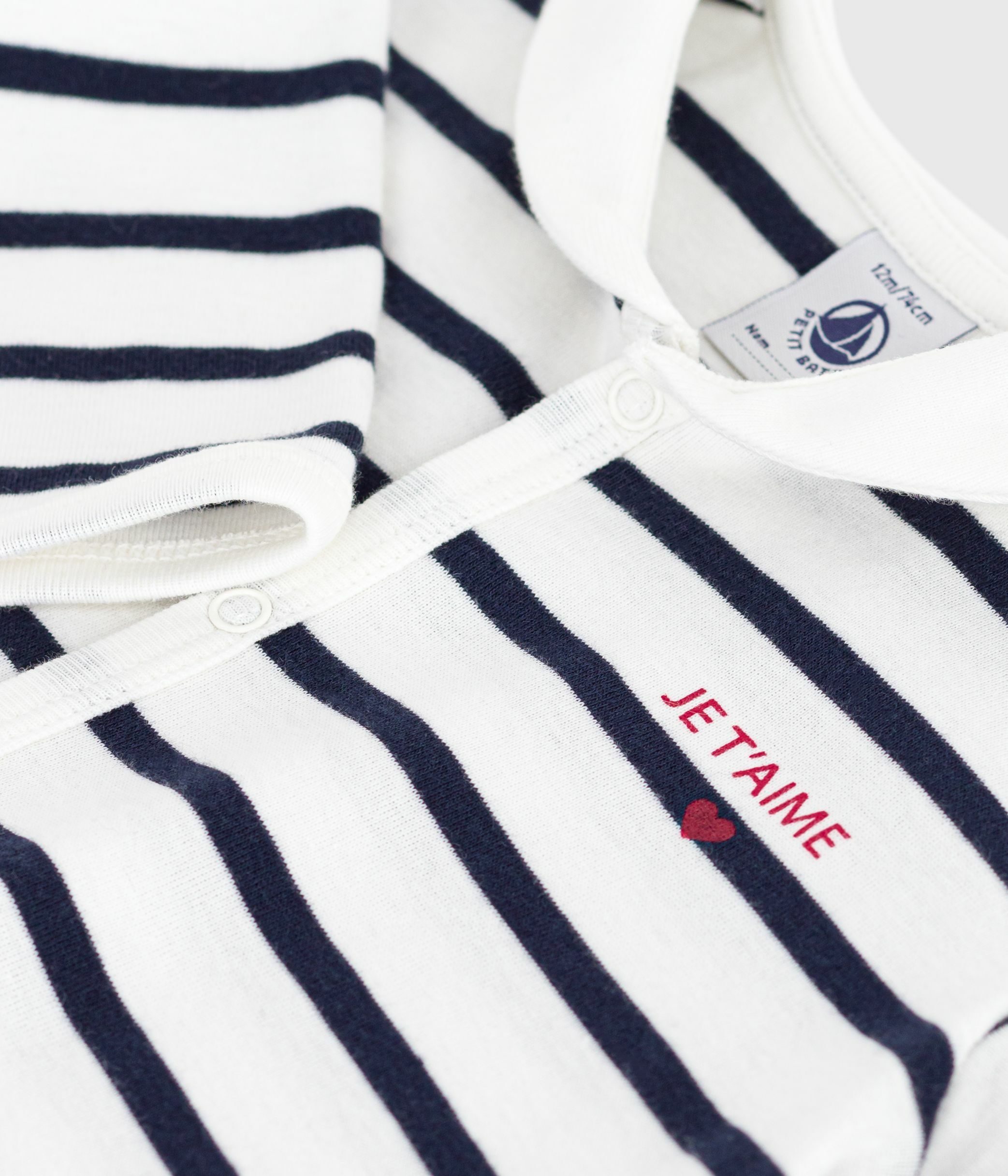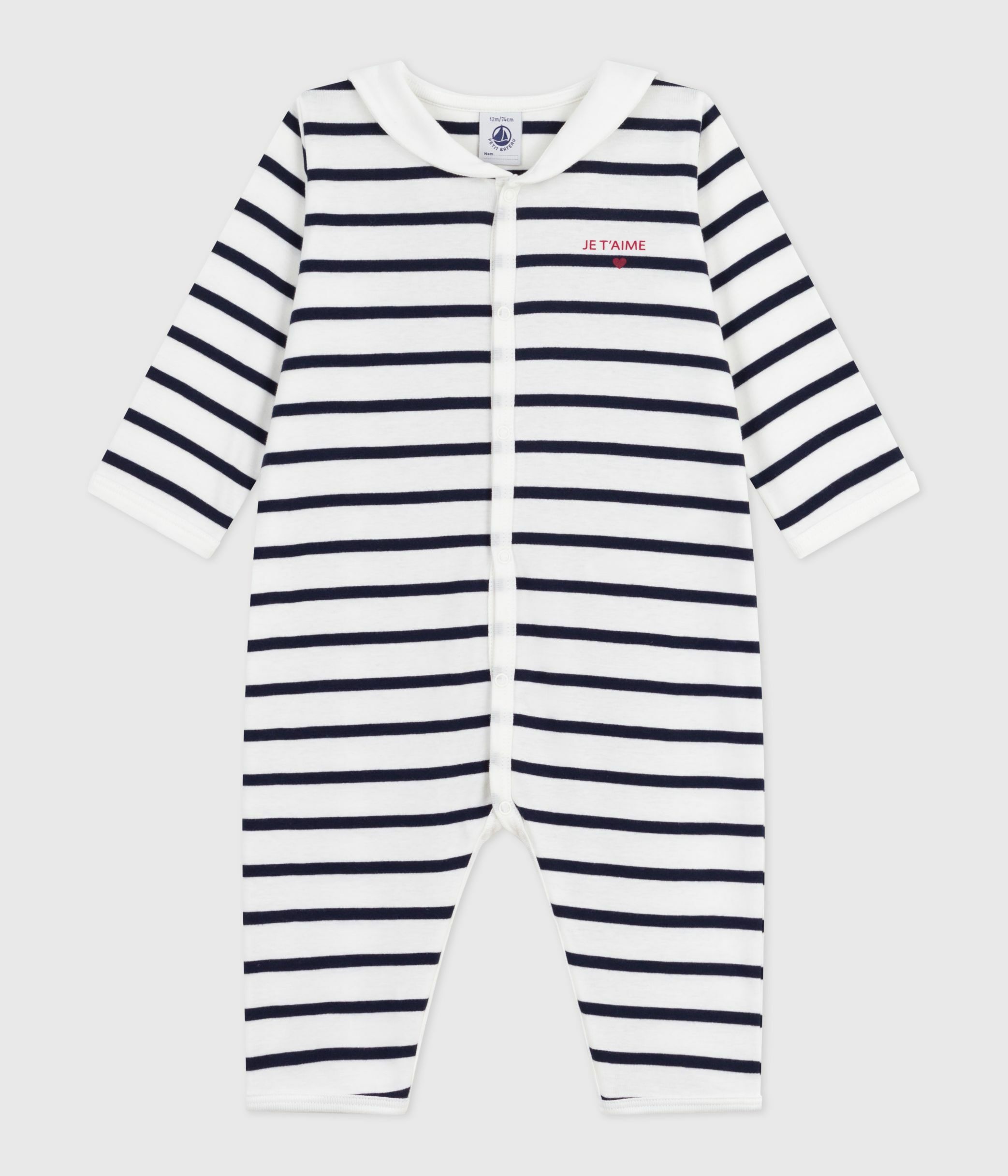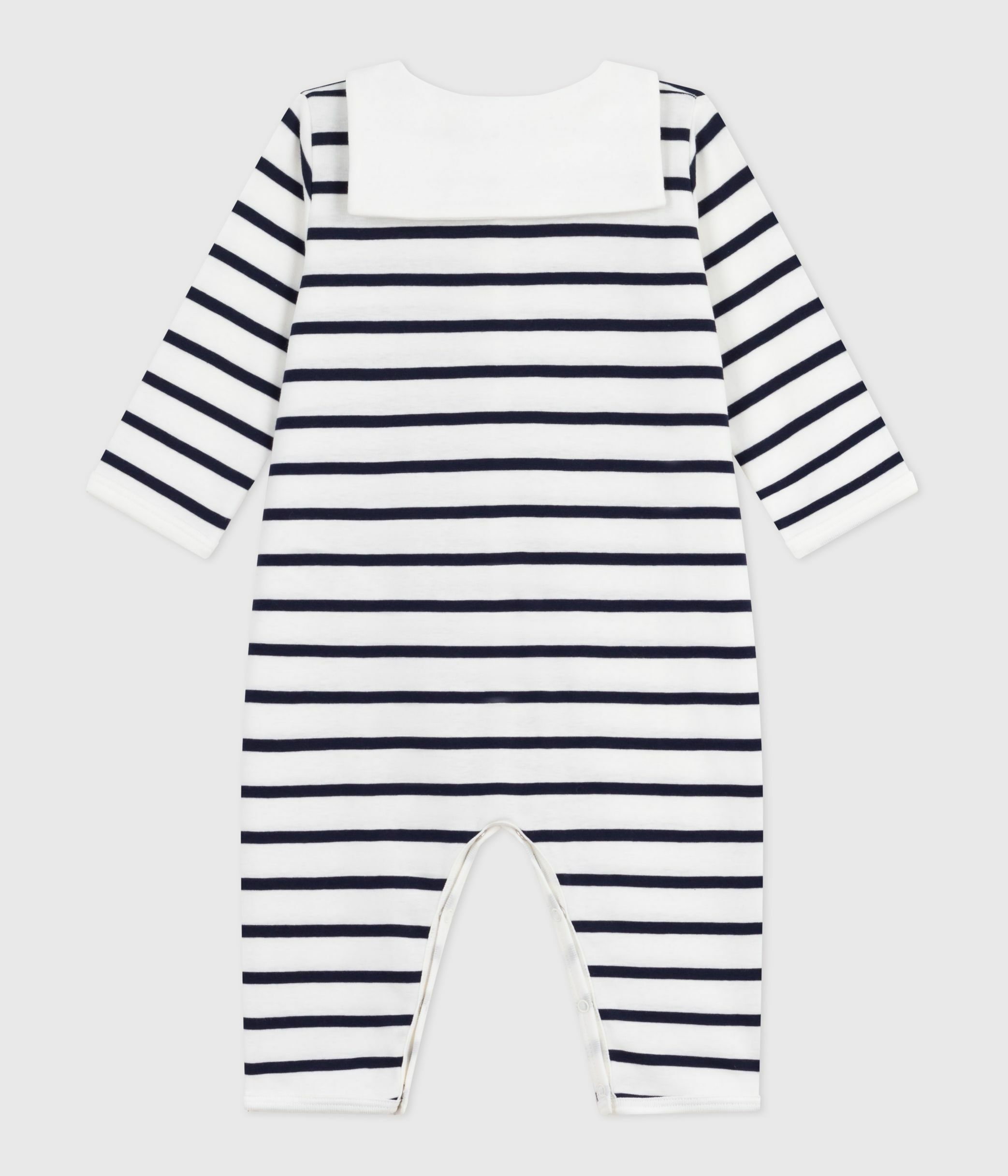 Babies' footless stripy boat-neck cotton pyjama suit