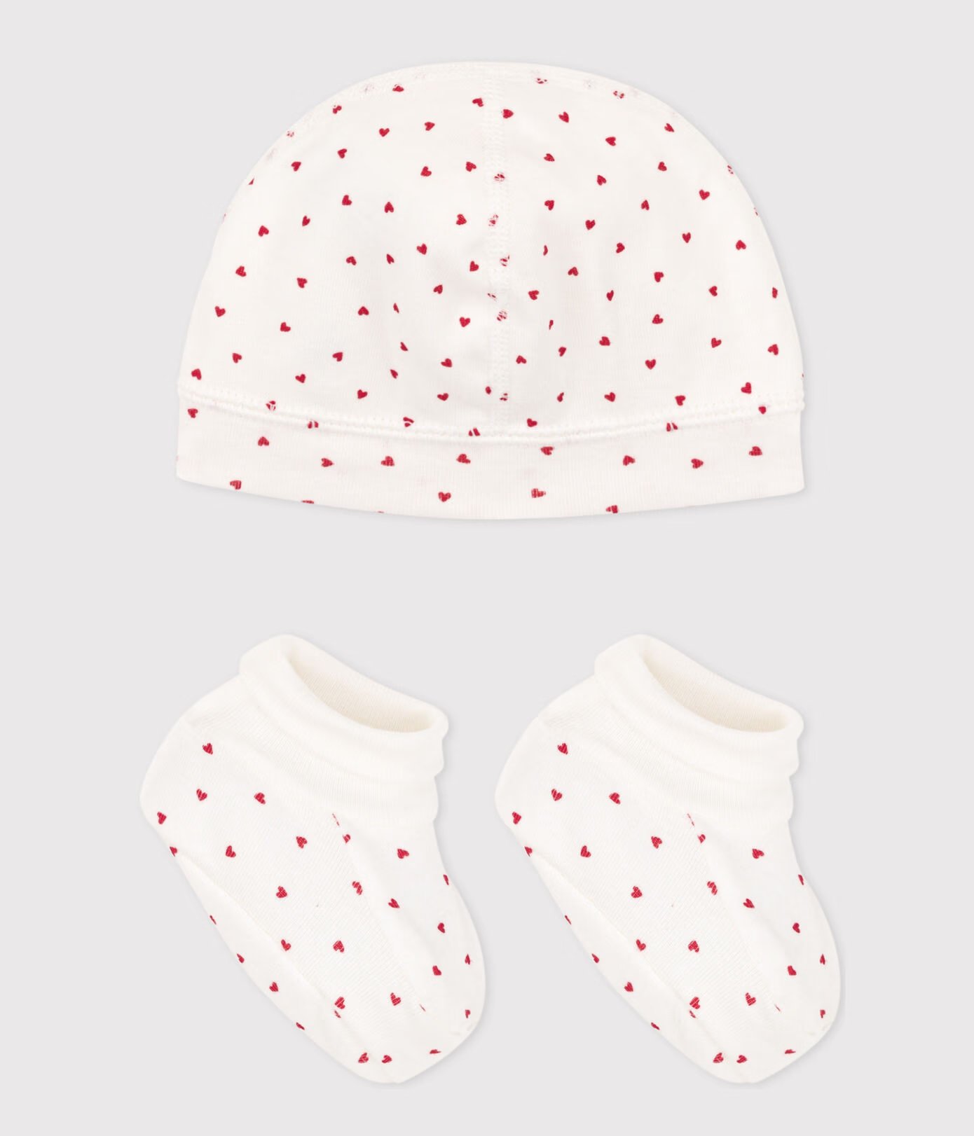 Unisex Baby Hat And Bootees Made From Petit Bateau's Signature Ribbed Fabric.