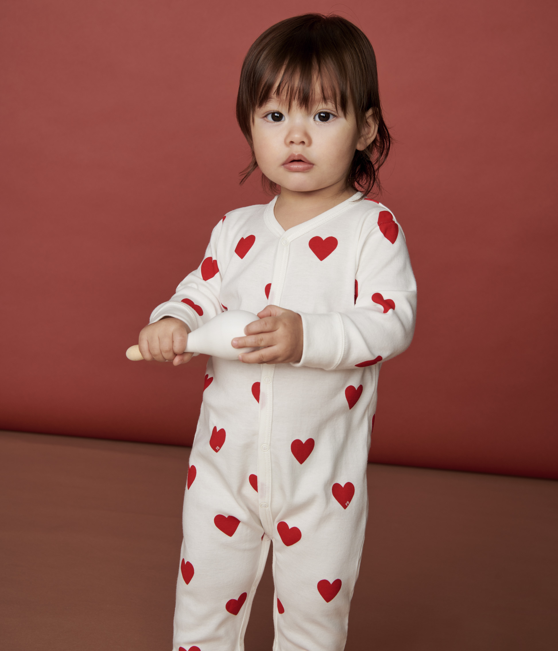 Babies' Heart Patterned Footless Cotton Sleepsuit