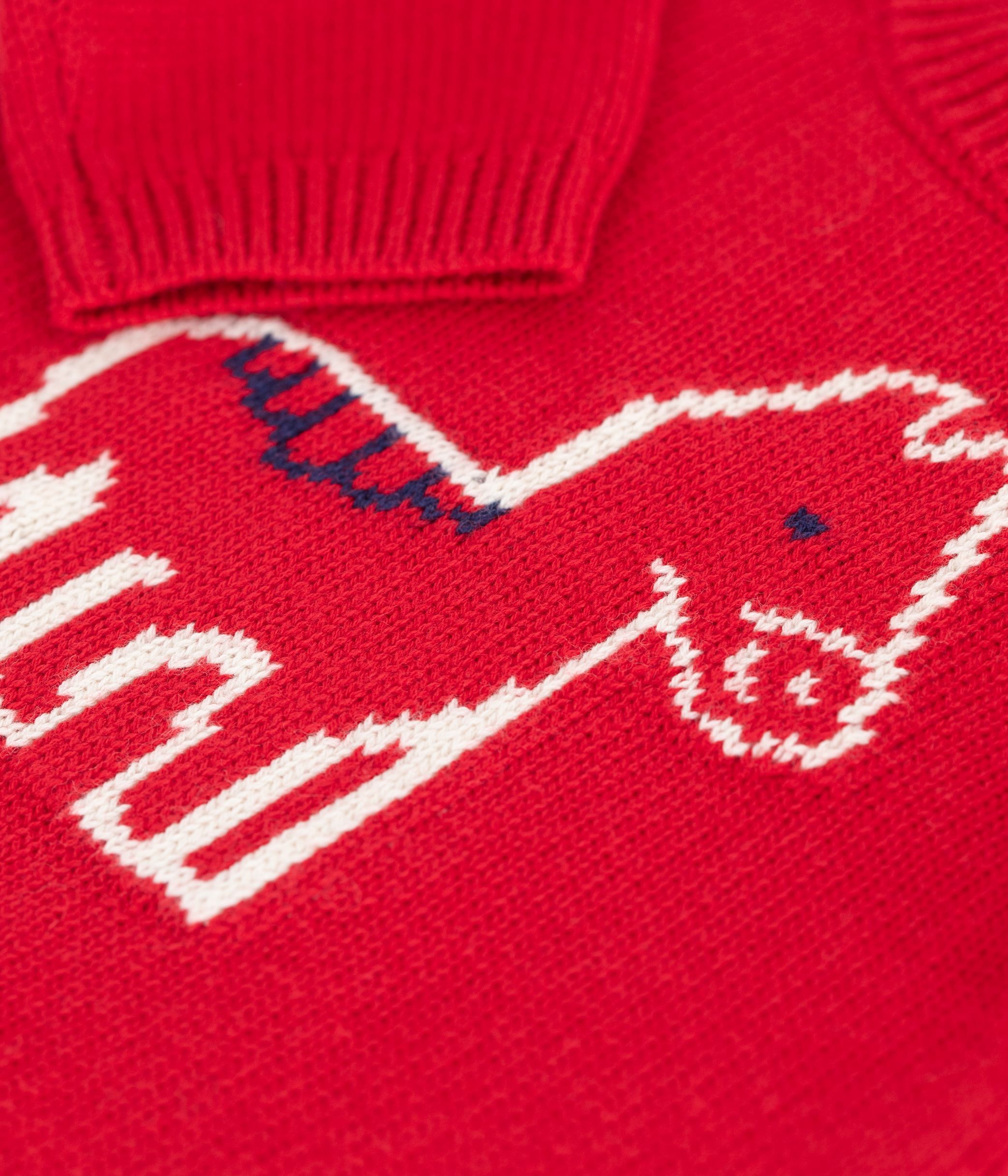 Babies' jumper in a wool and cotton knit with a horse design