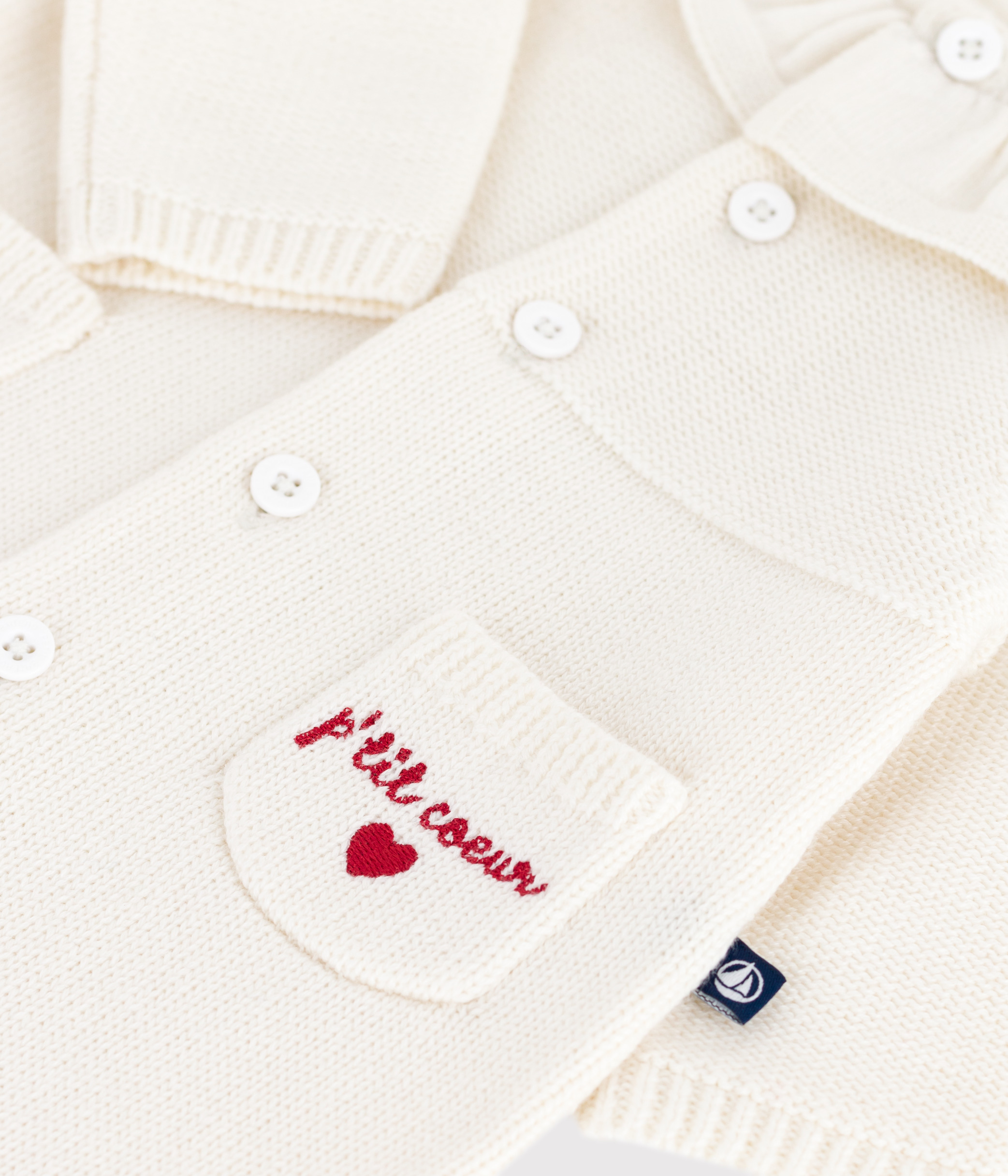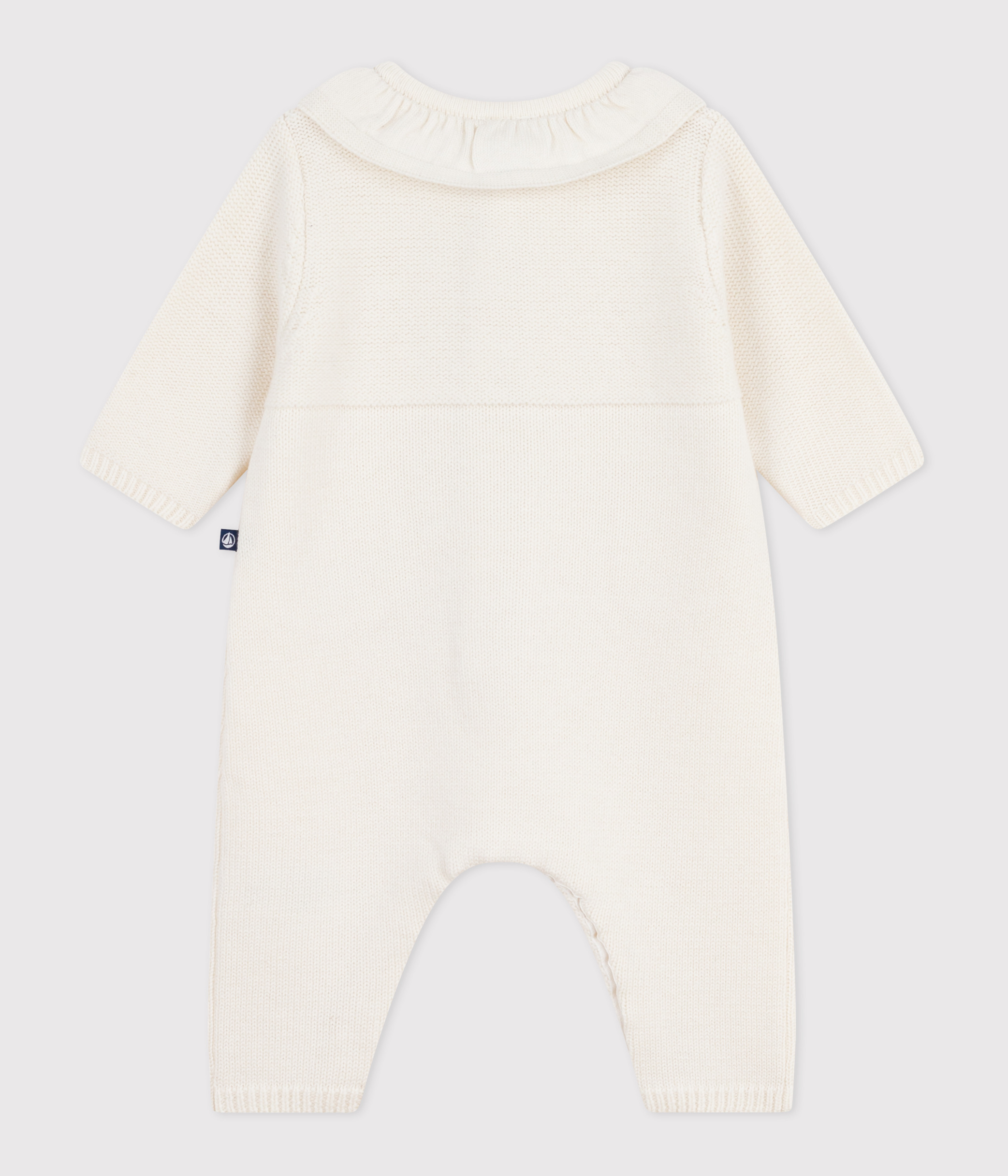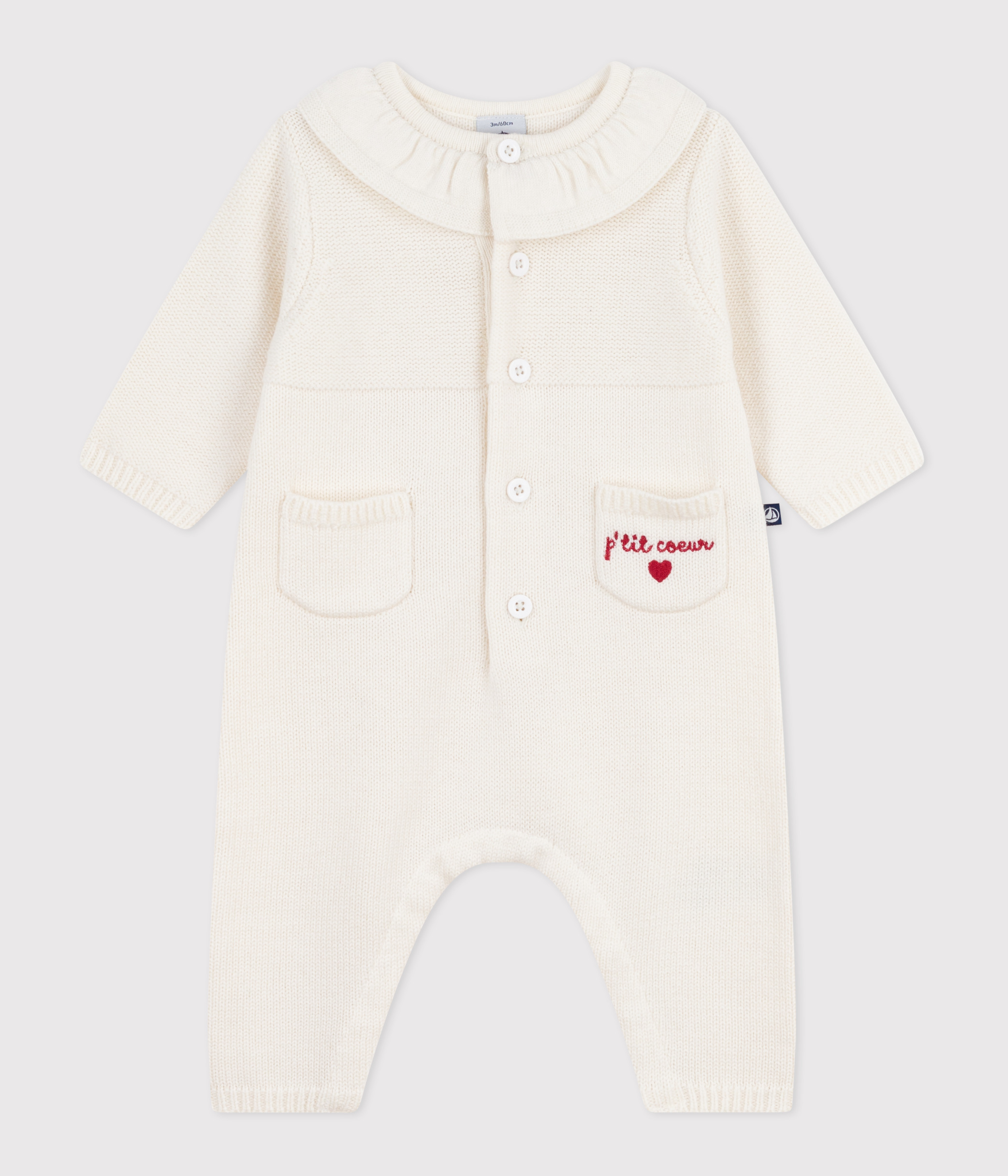 Babies' knitted playsuit with a collar and P'tit Cœur embroidery