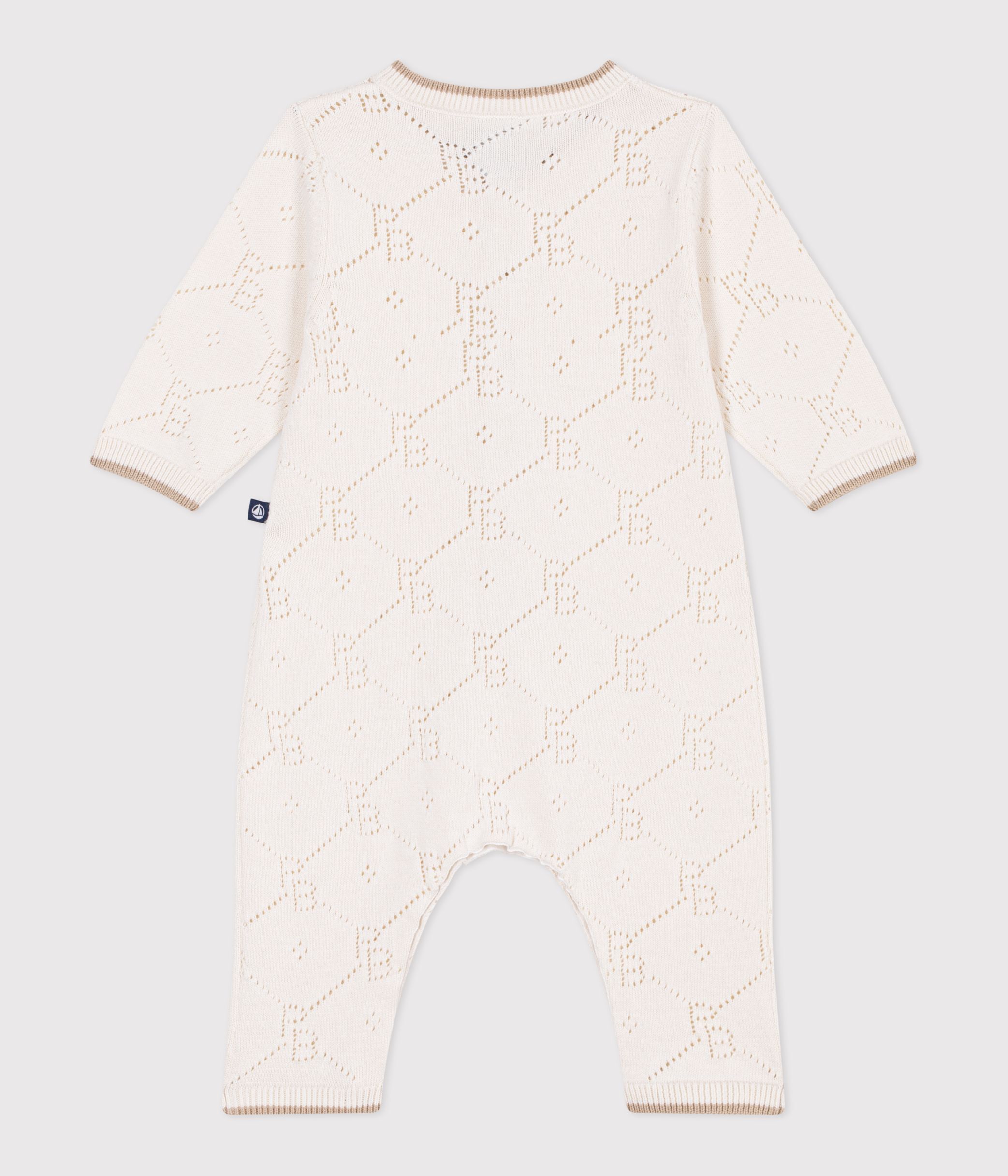 Babies' long openwork knit cotton playsuit