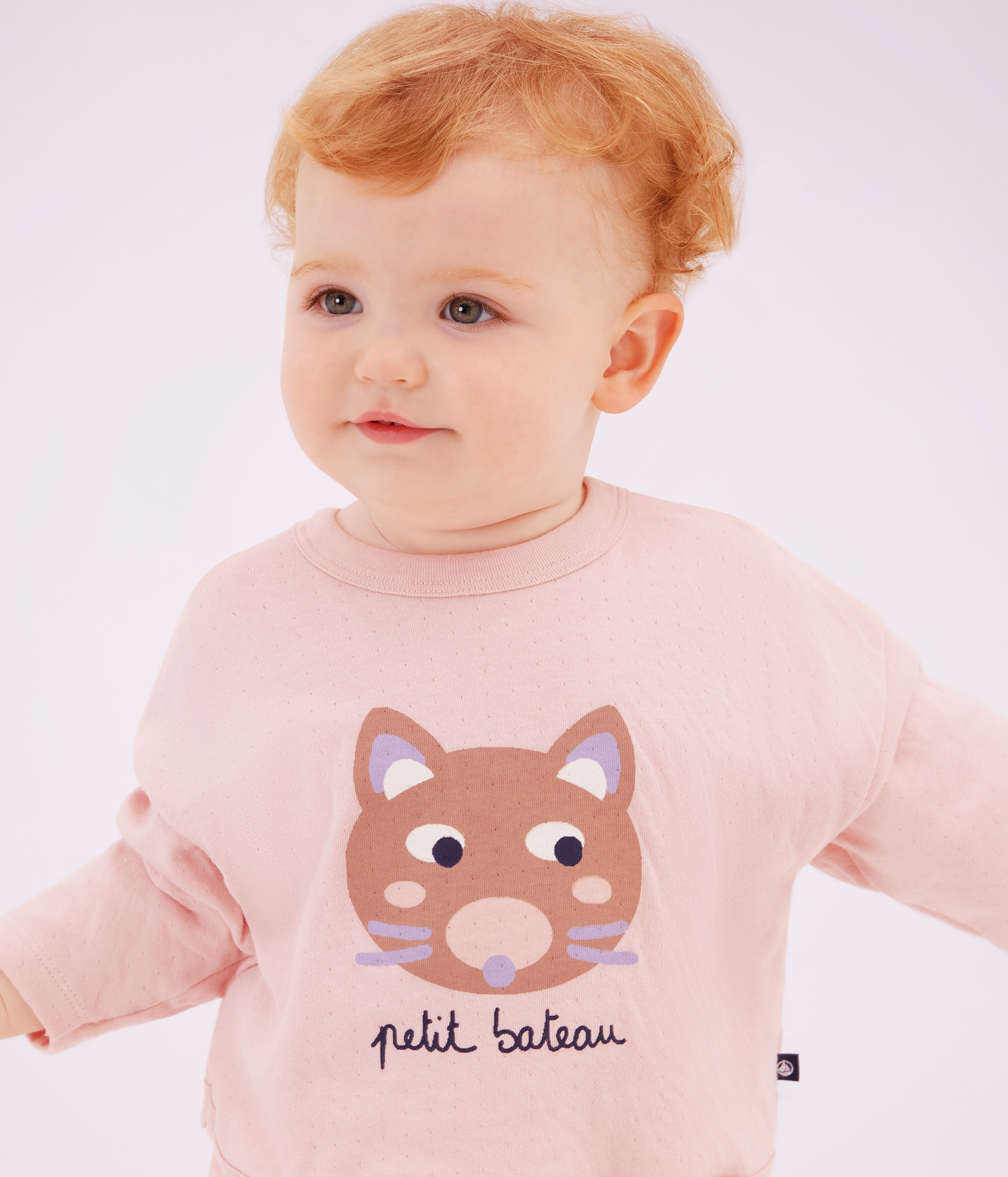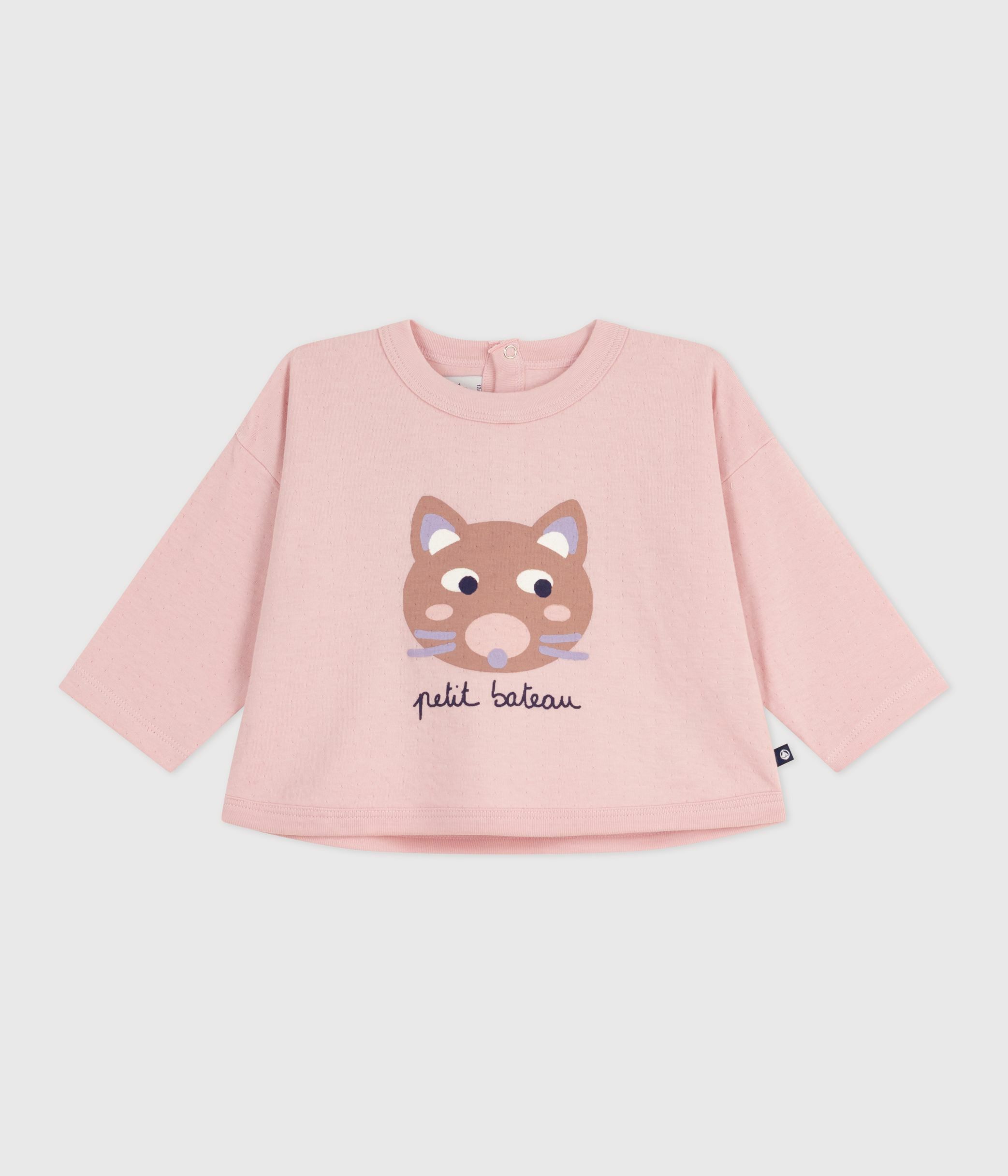 Babies' long-sleeved T-shirt with a cat design