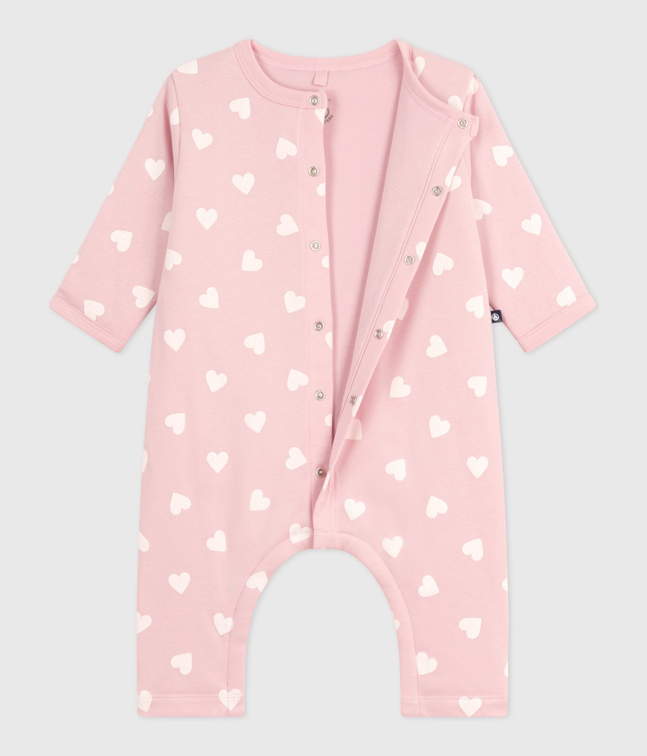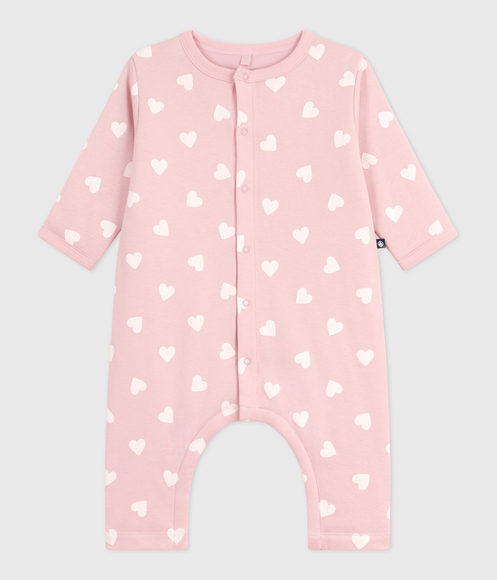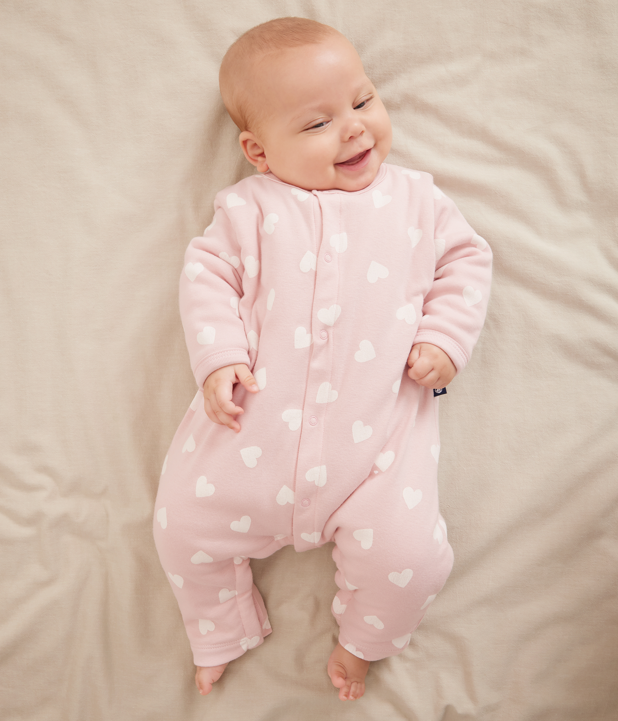 Girls' long playsuit in padded 1X1 rib knit, a stretchy, comfortable fabric