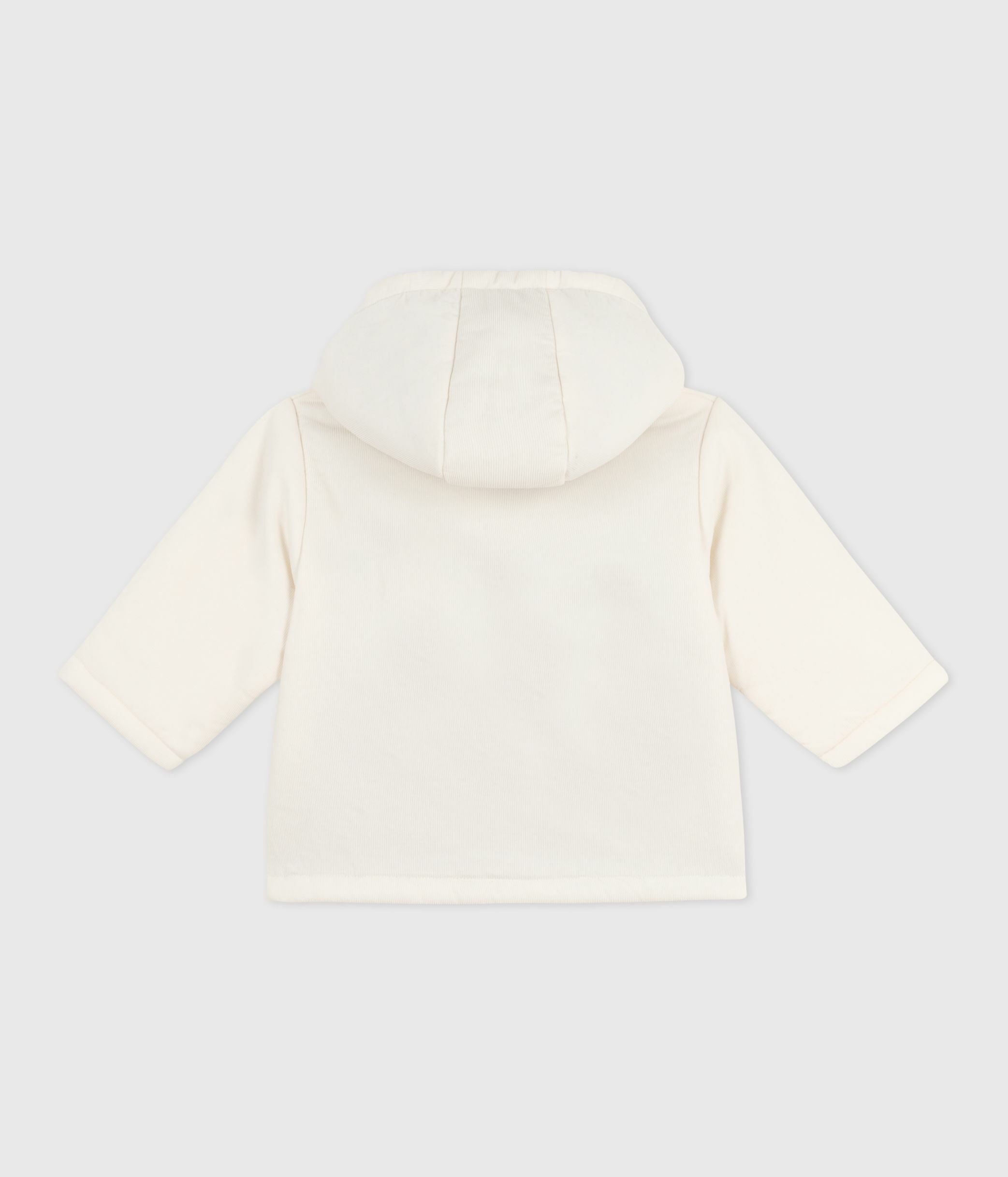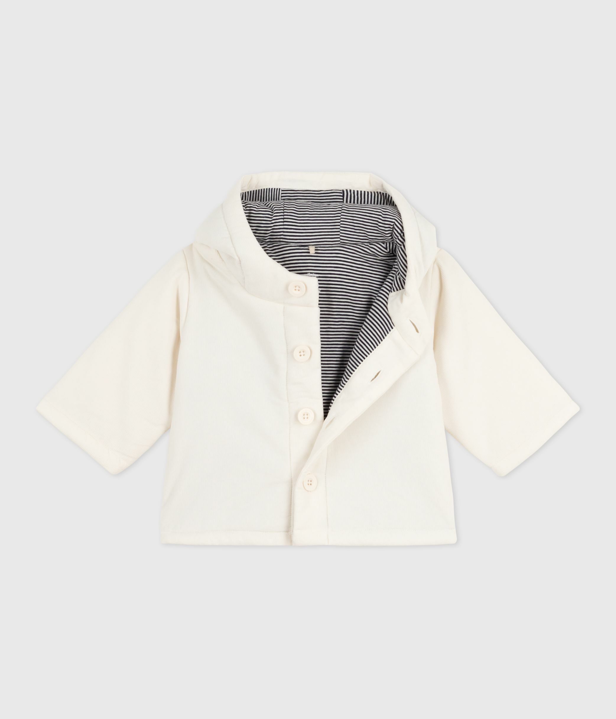 Babies' padded jacket in embroidered velour with a pinstriped lining