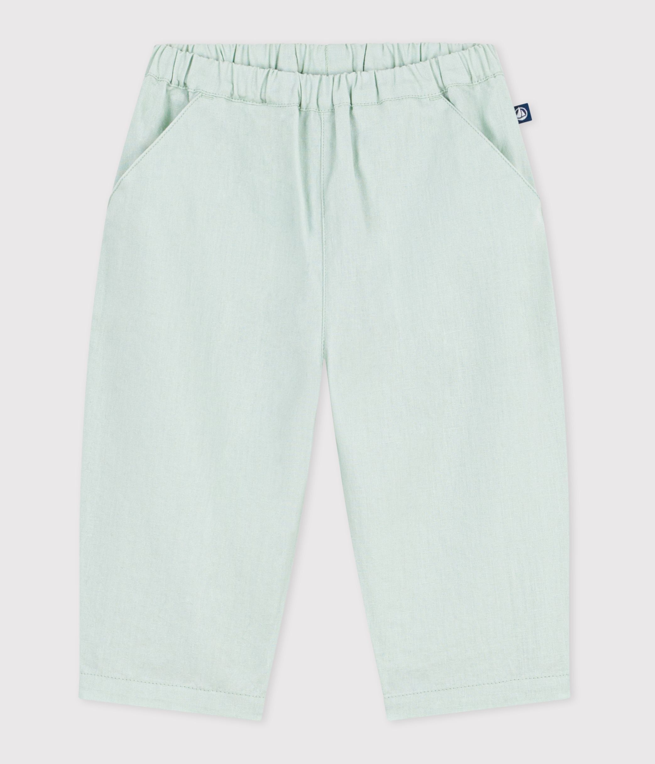 Babies' plain cotton/linen trousers