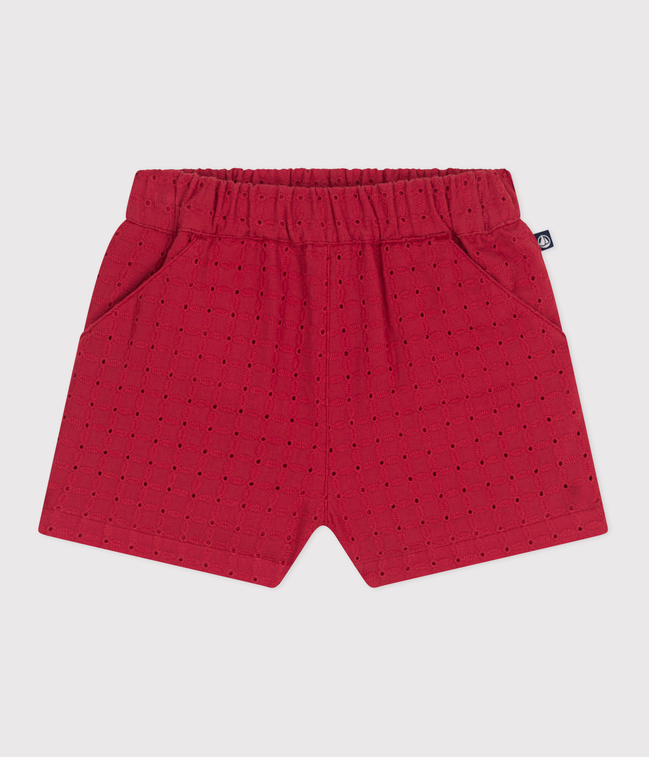 Girls' shorts in broderie anglaise, a fine, lightweight fabric with an embroidered-effect floral motif.