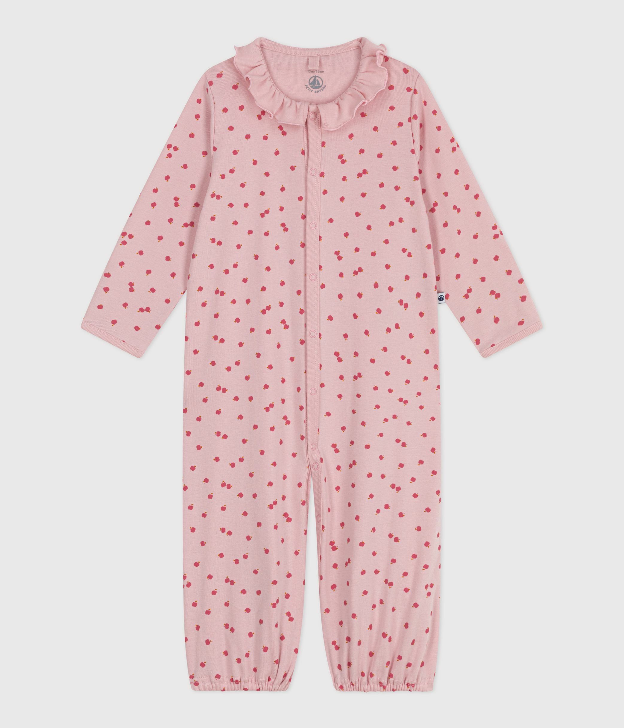 Babies' printed cotton jumpsuit/sleeping bag with a collar