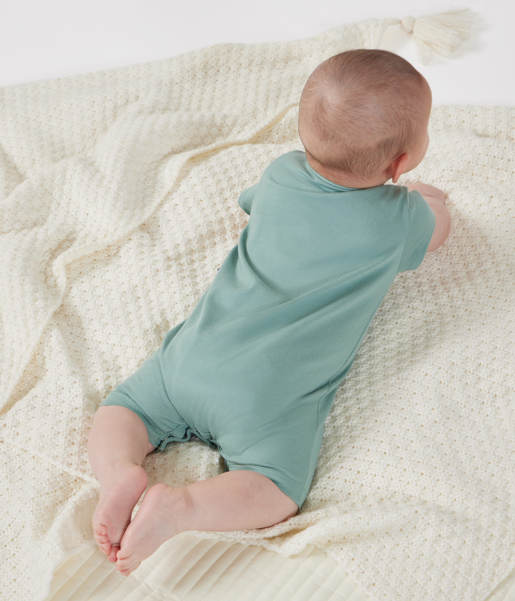 Boys' short playsuit in lightweight jersey, a supple, comfy fabric that keeps its shape.