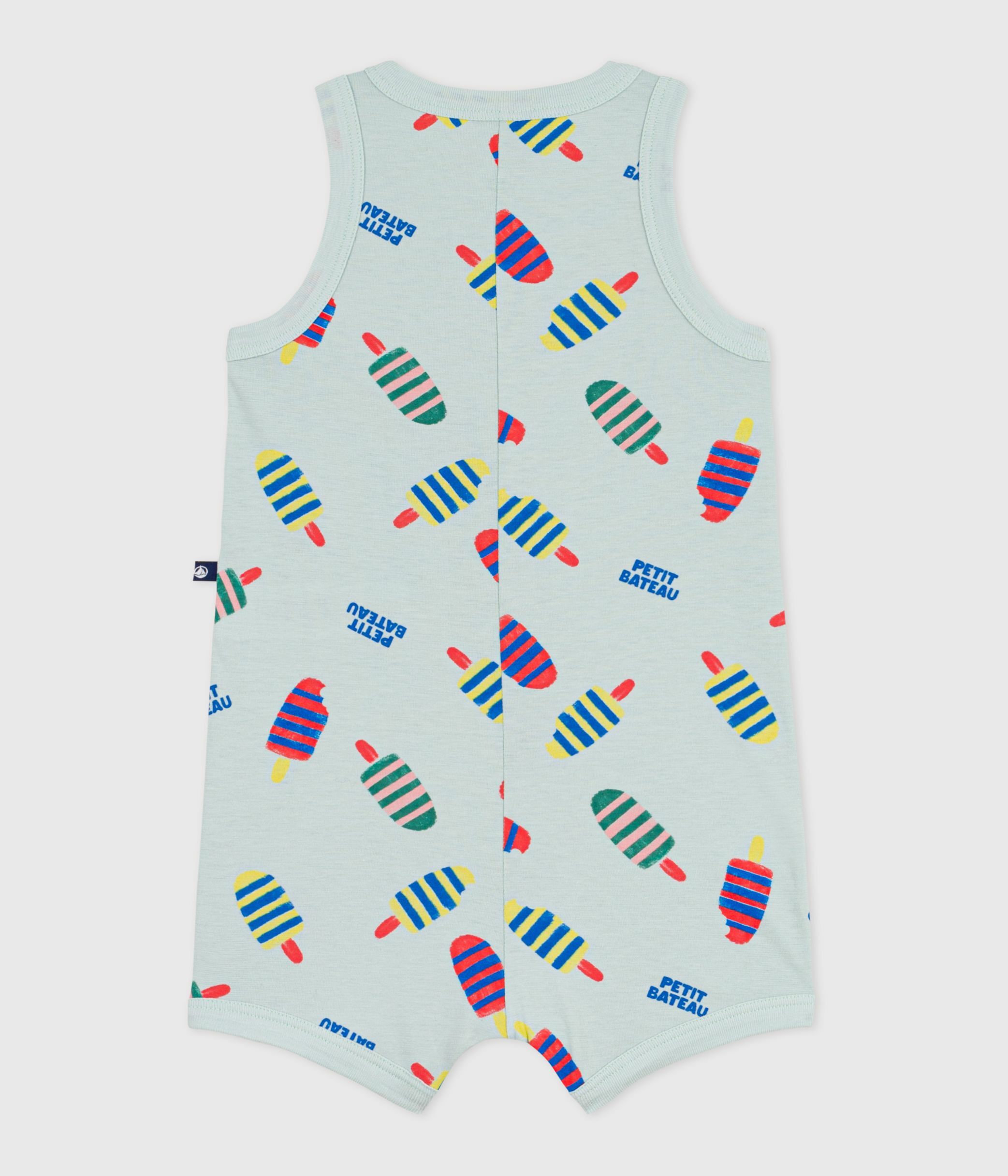 Babies' short cotton playsuit with an ice cream print