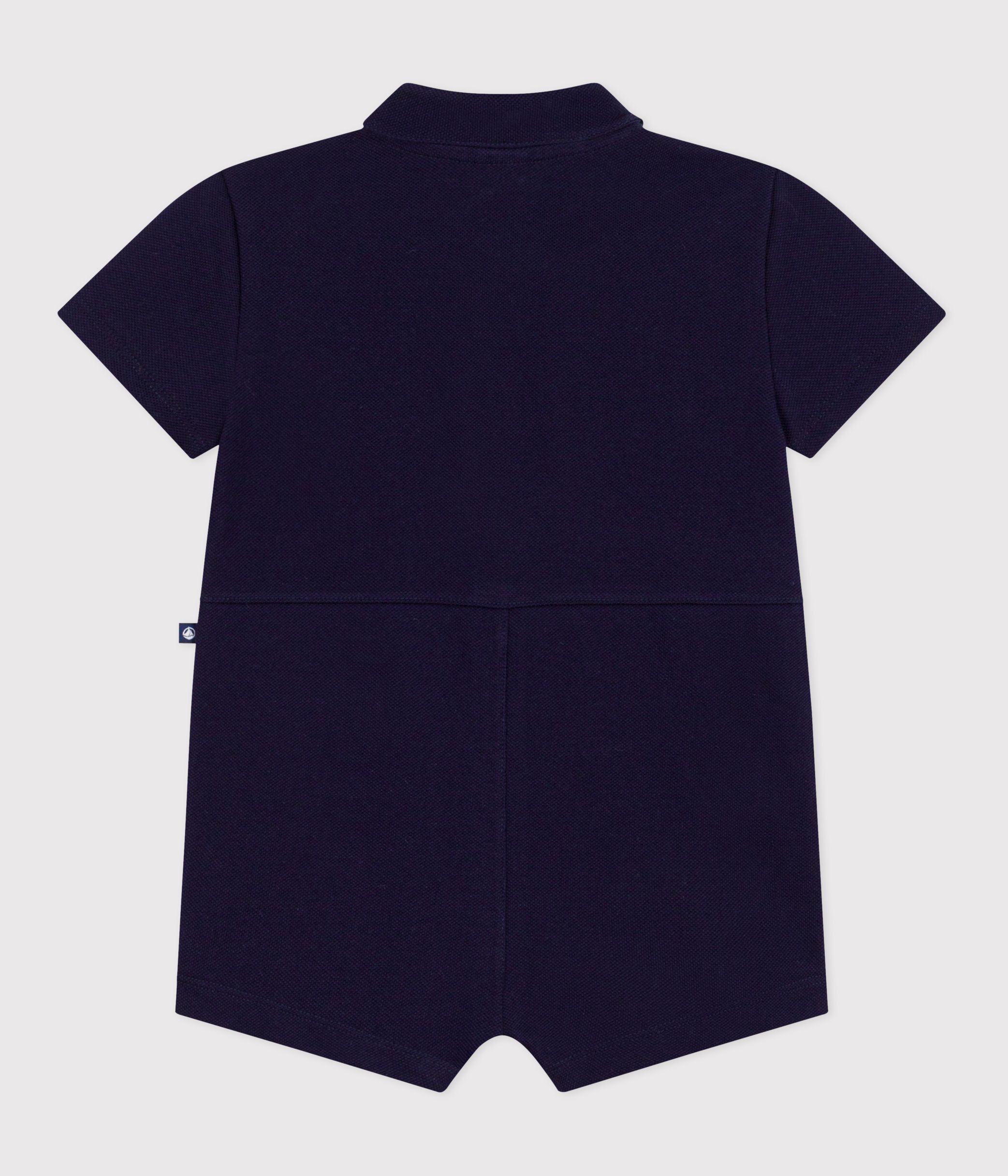 - Boys' short jumpsuit in piqué jersey, the iconic fabric associated with polo shirts.