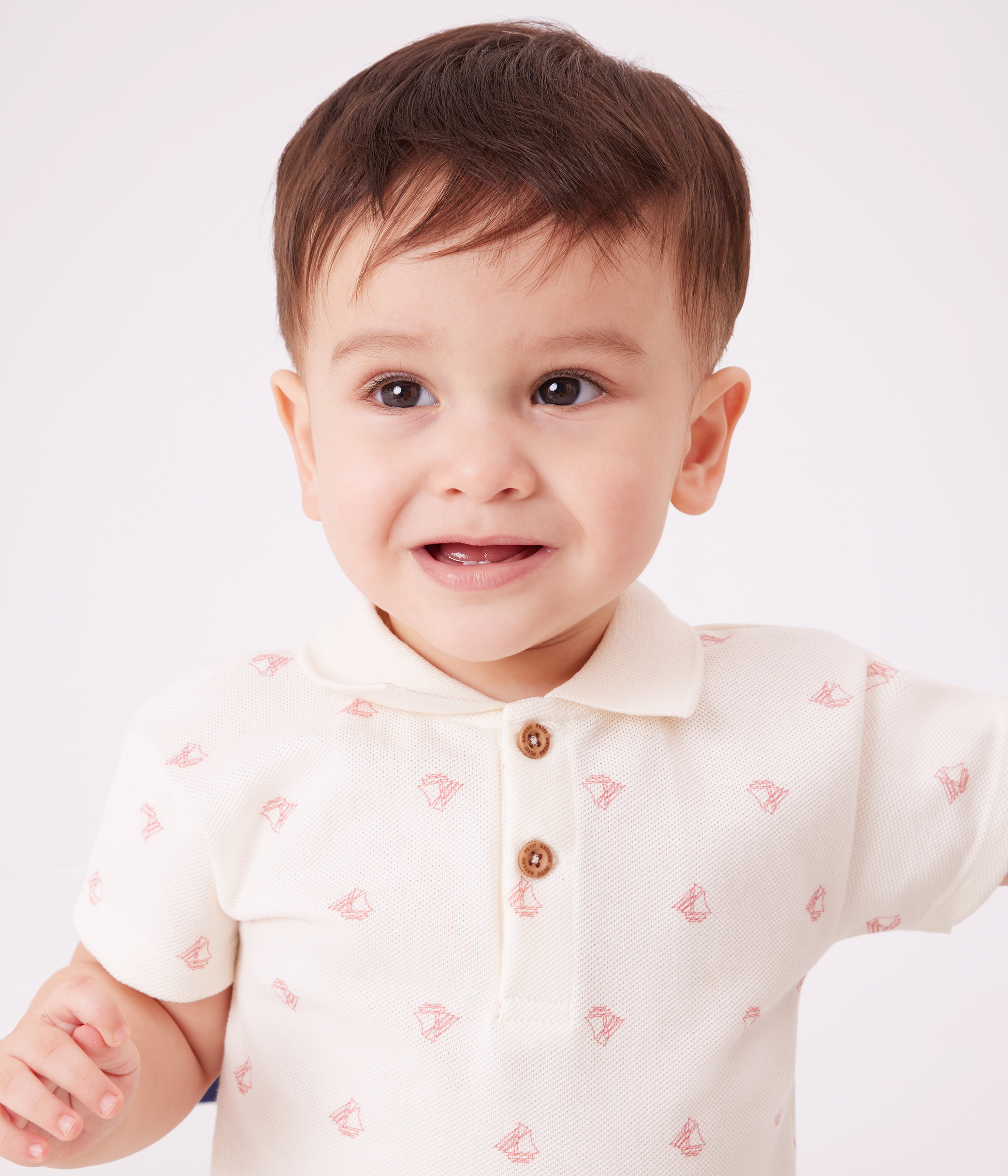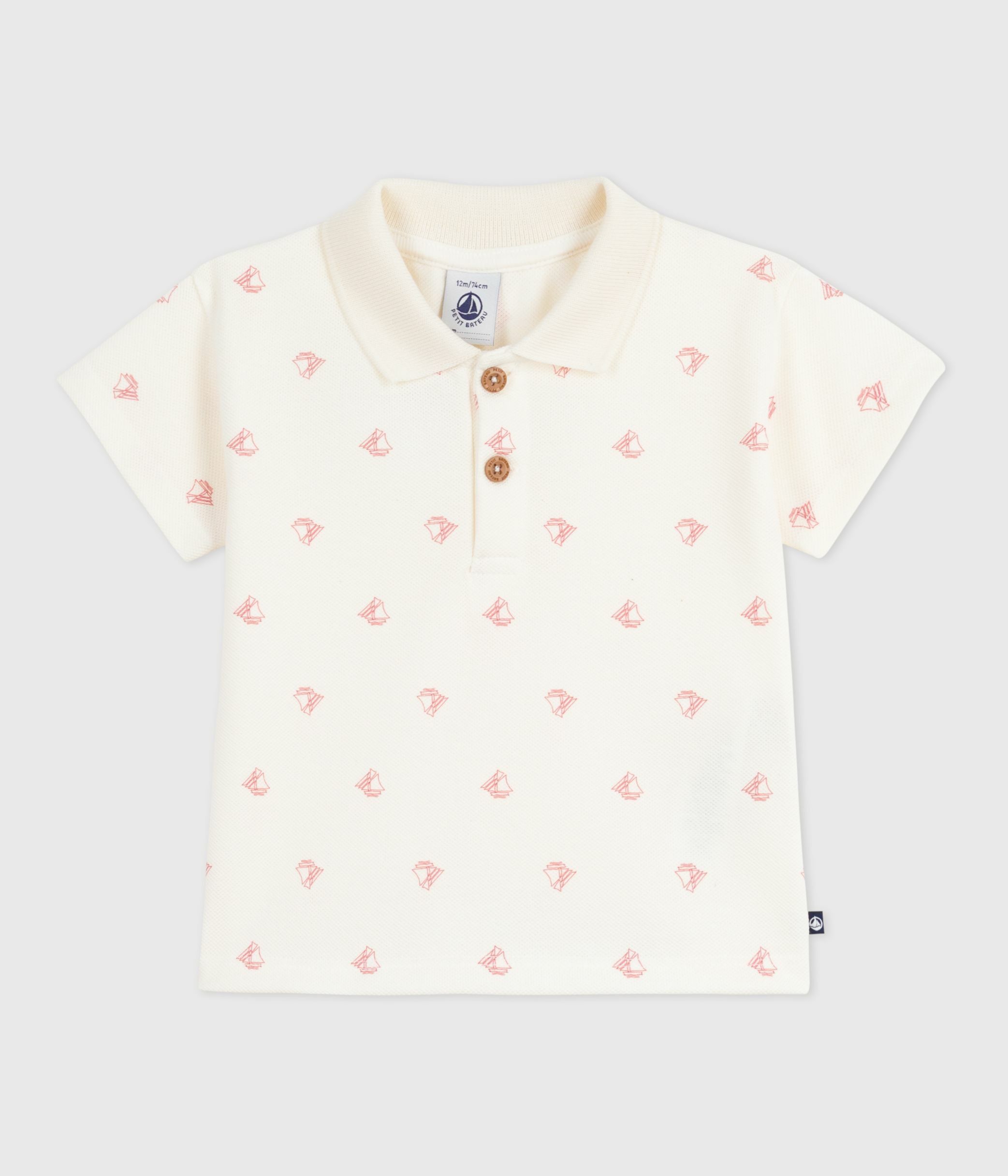 Babies' short-sleeved cotton polo shirt printed with vintage boats