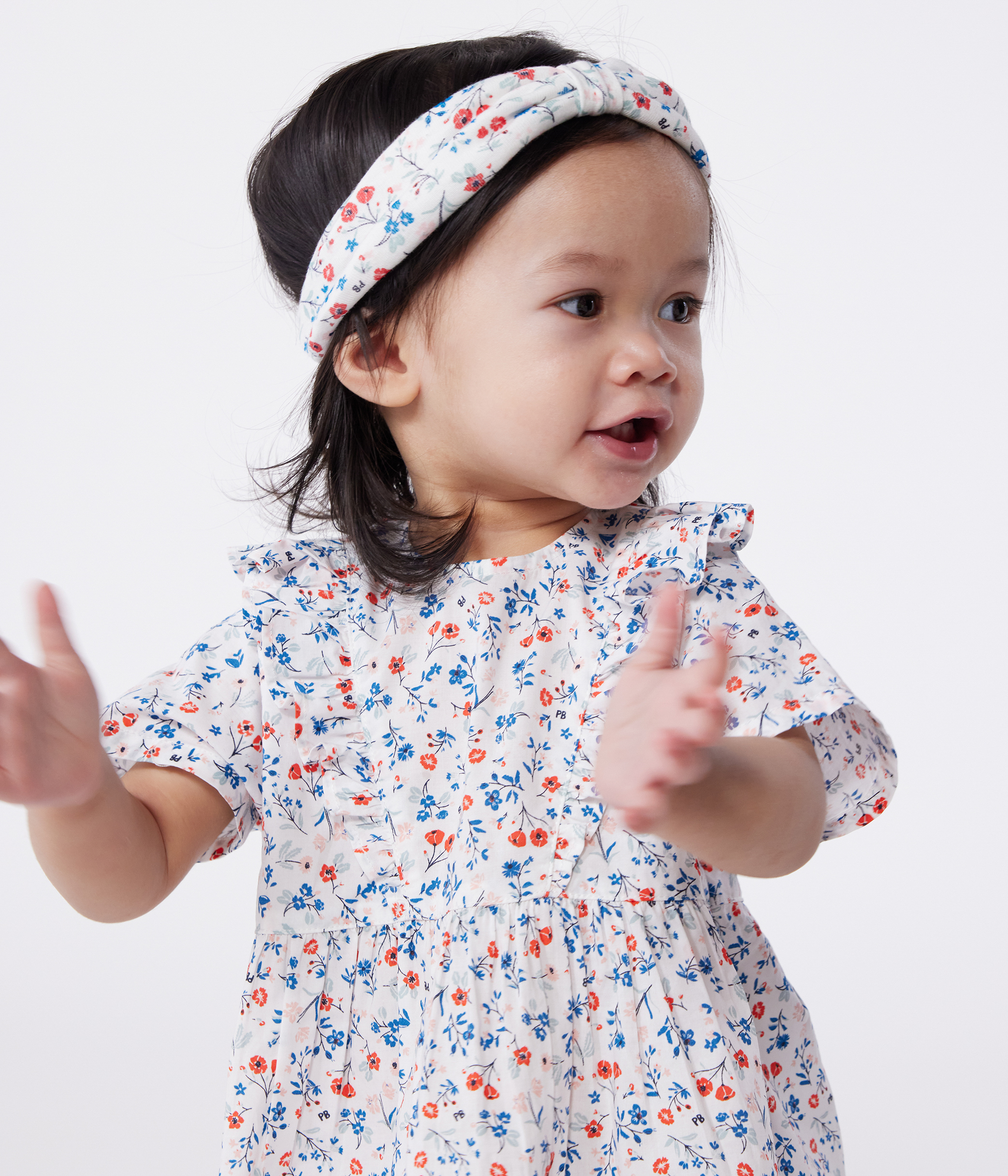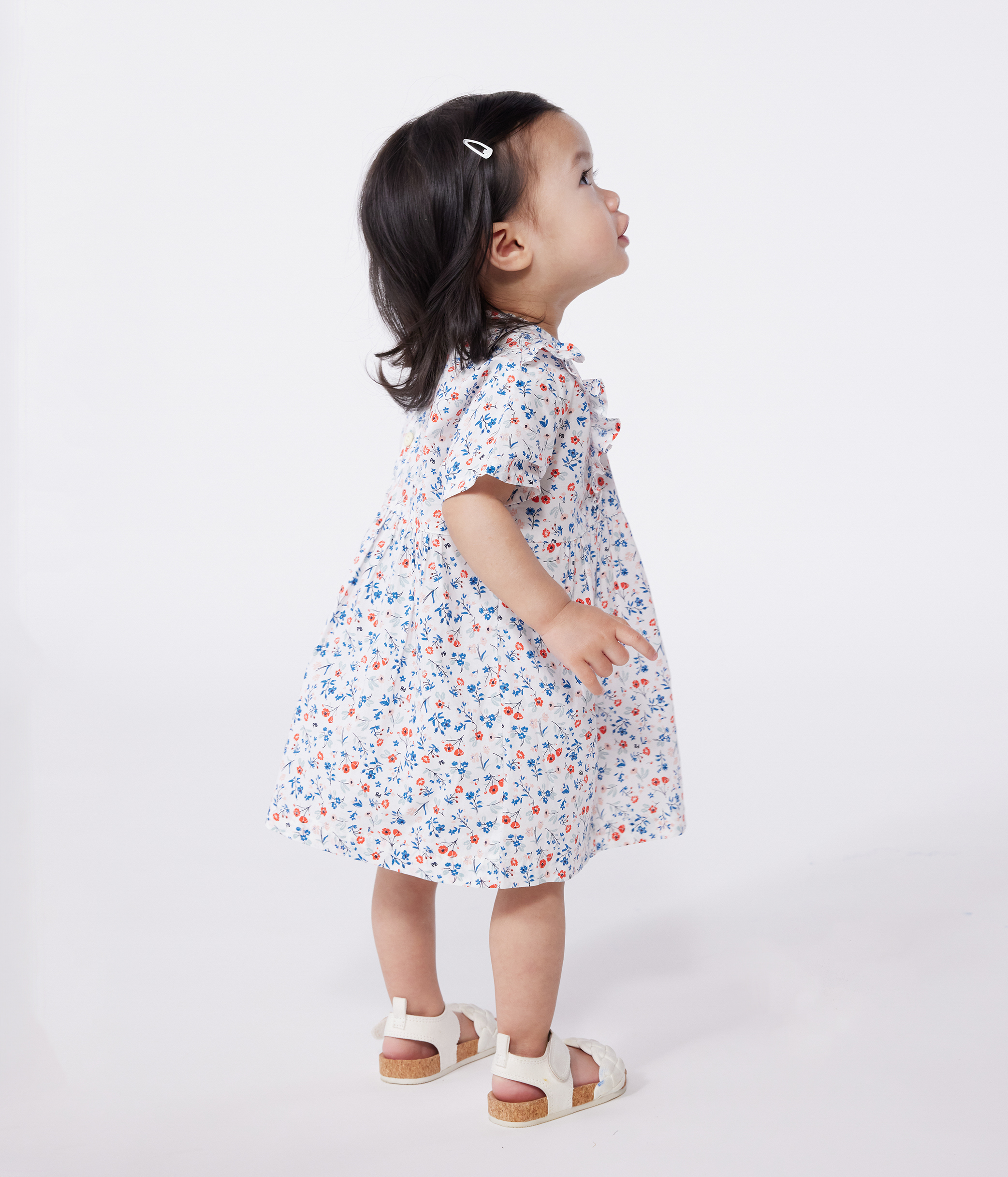 Girls' floral dress in poplin, a lightweight, fine, supple fabric ideal for sunny days.