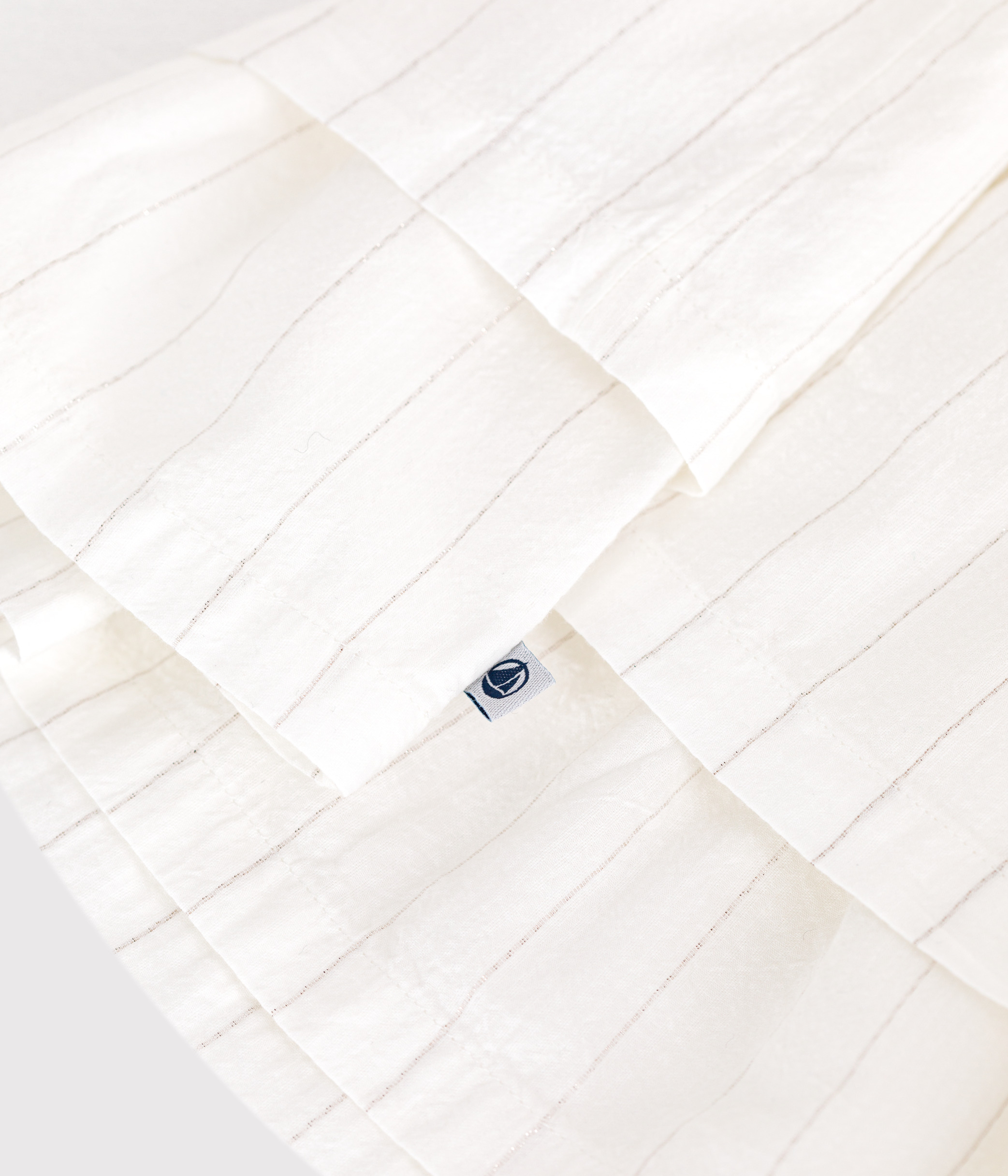 Girls' dress in seersucker, a slightly embossed material with metallic fibres.