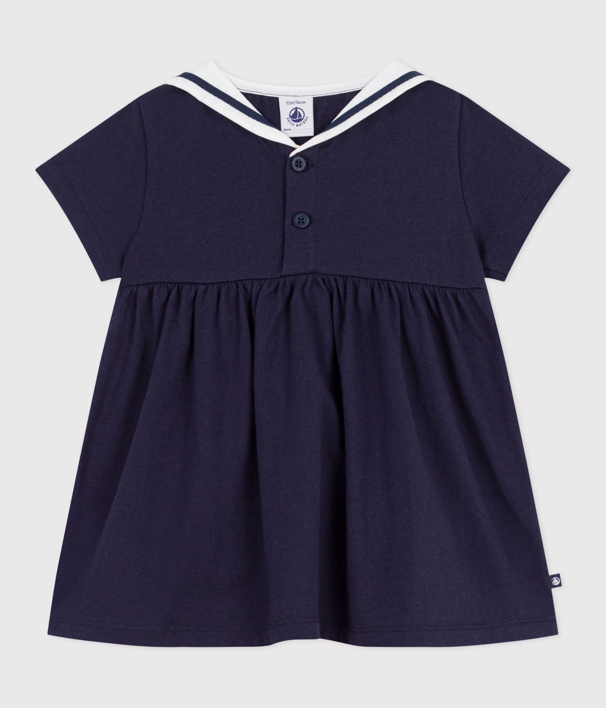 Babies' short-sleeved plain cotton dress with a sailor collar