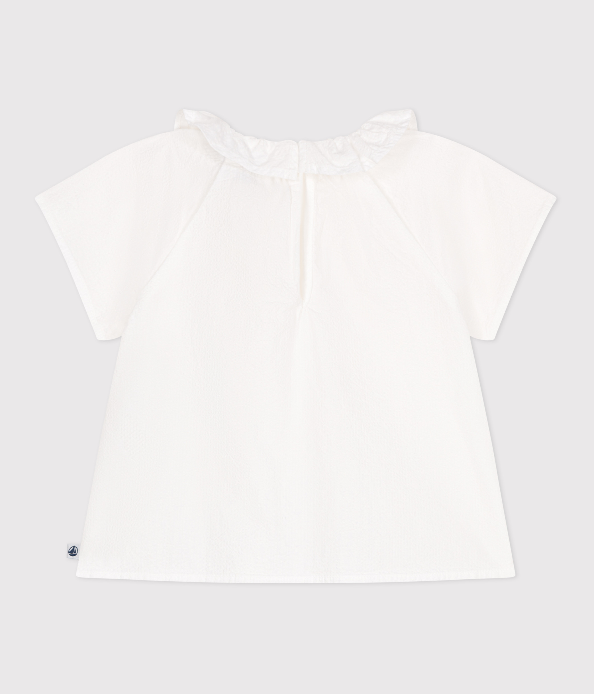 Girls' blouse in seersucker, a lightweight fabric with a slightly embossed look.