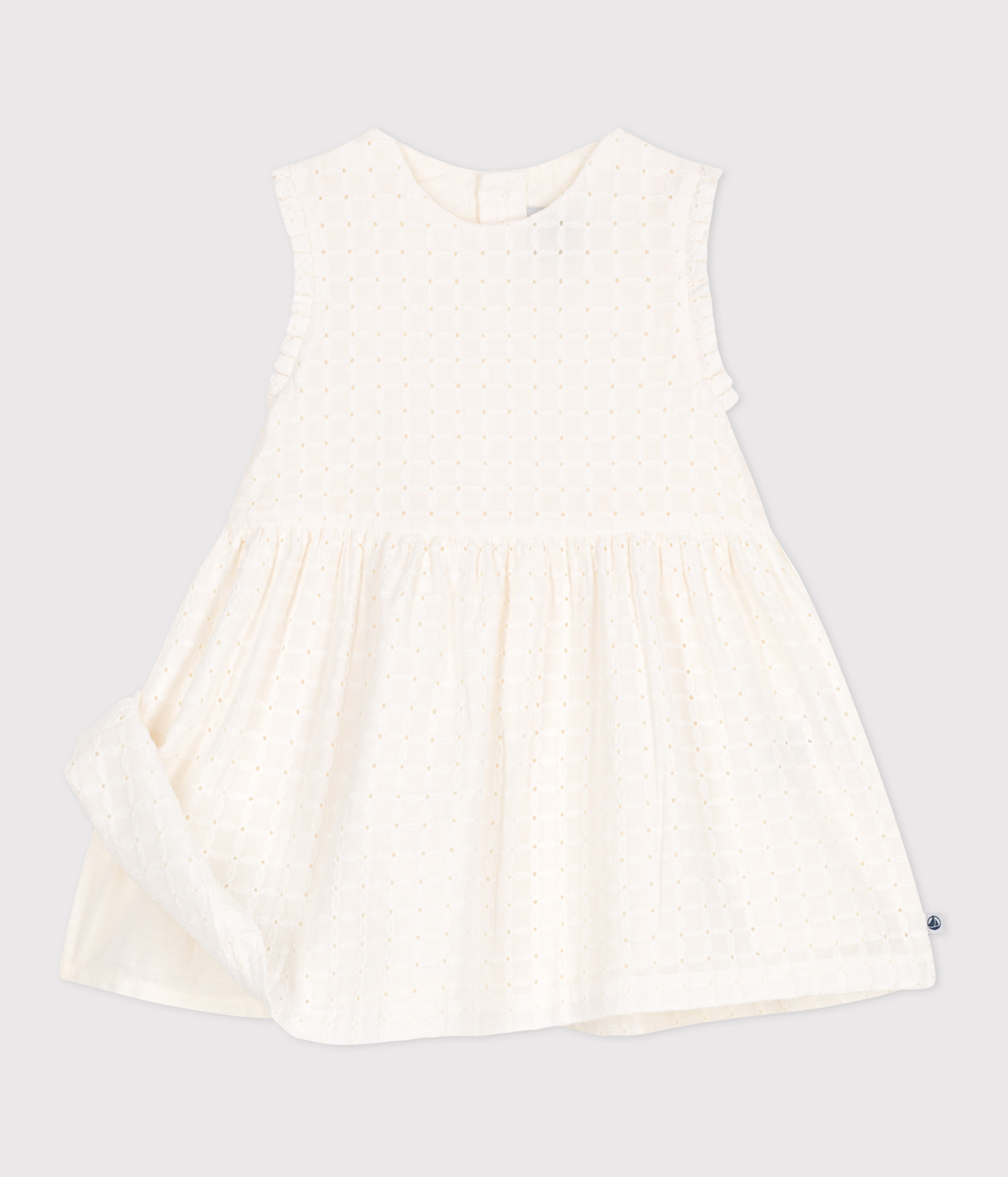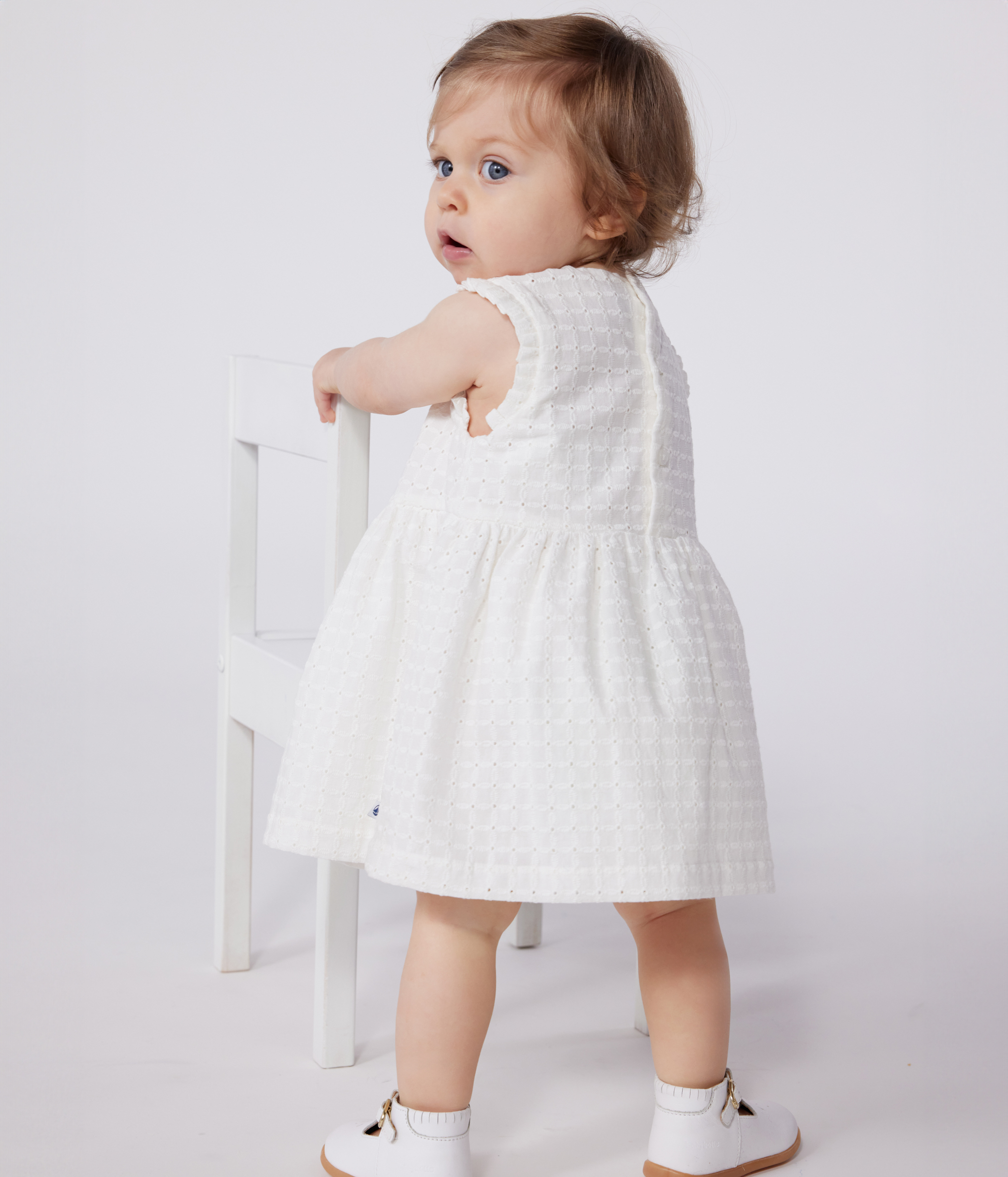 Babies' sleeveless white cotton broderie anglaise dress