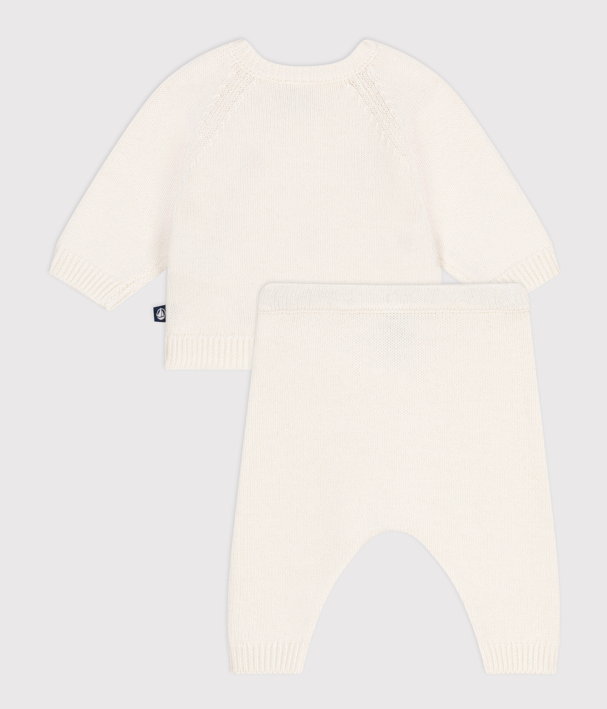 Babies' two-piece knitted outfit with embroidered hearts