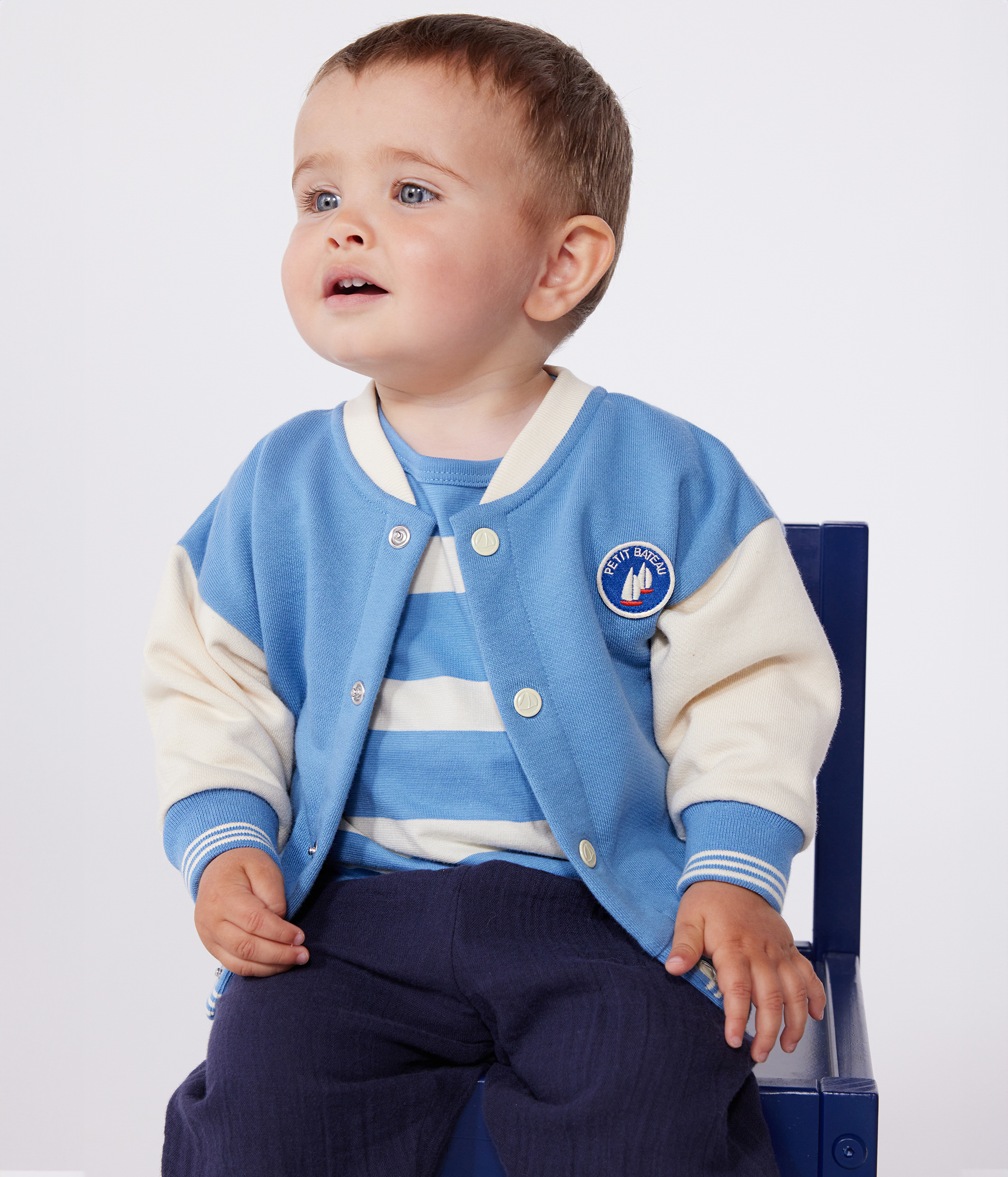 Babies' varsity-style jacket in colourblock cotton