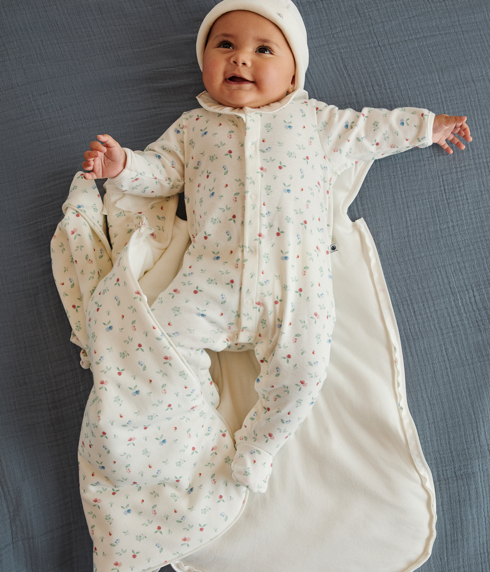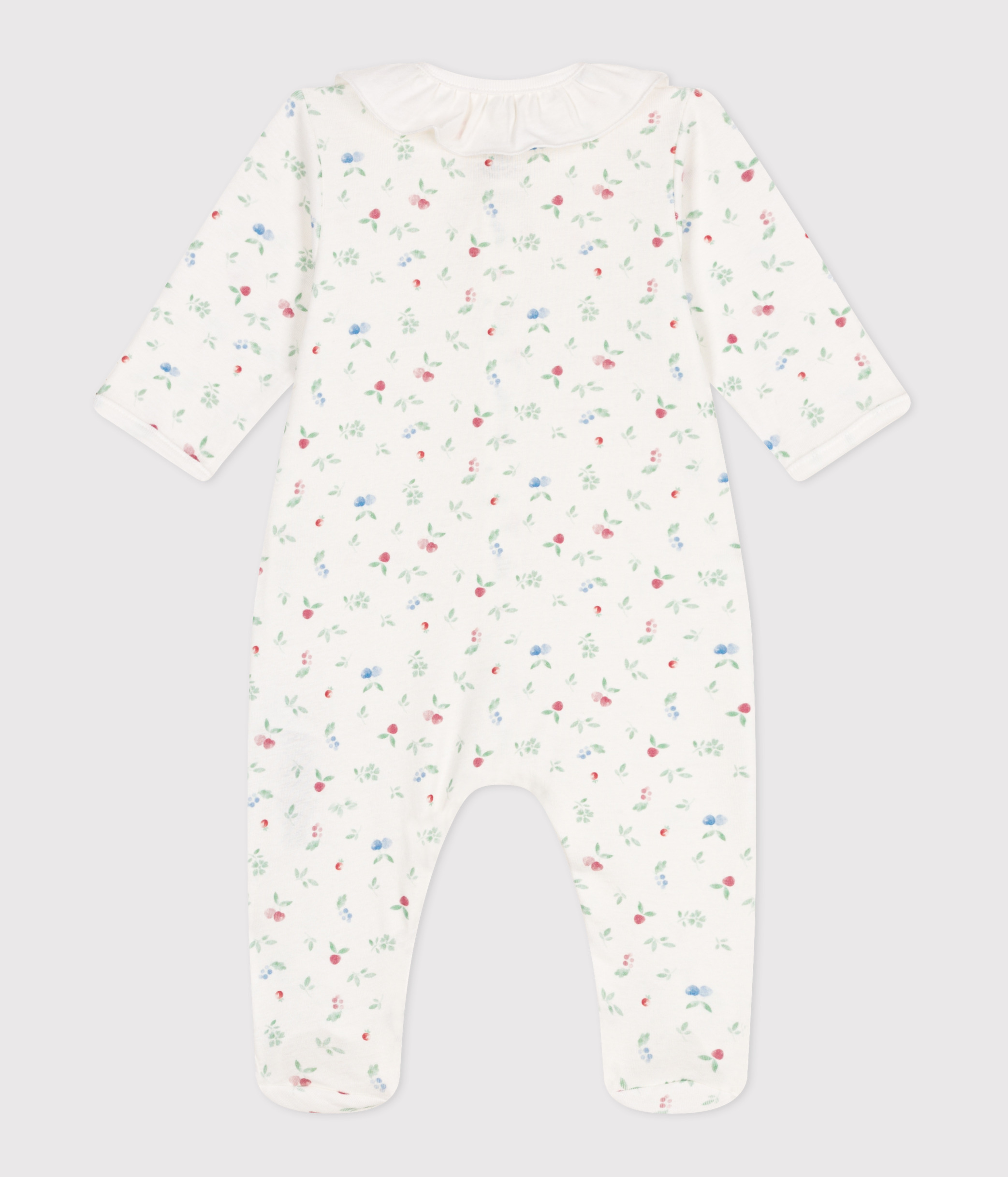 - This refined, feminine pyjama suit with a ruff collar, is an ideal gift for a newborn baby.