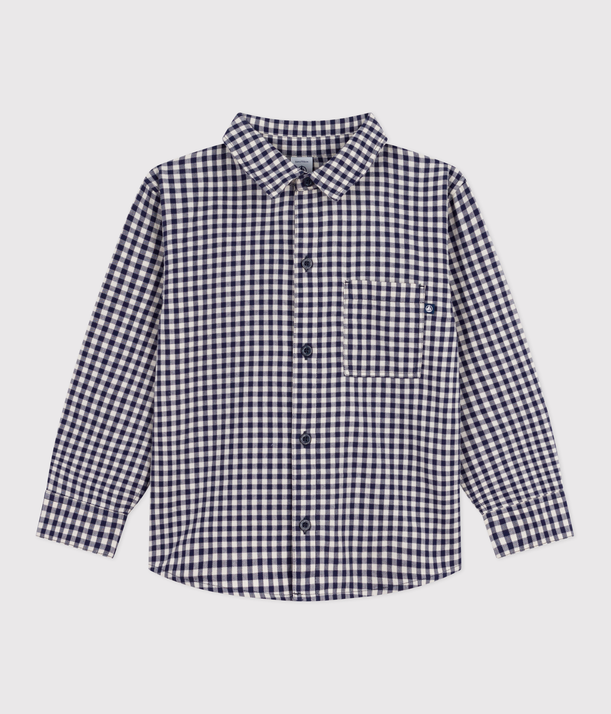 Boys' shirt in checked poplin, a fine, soft and lightweight fabric.