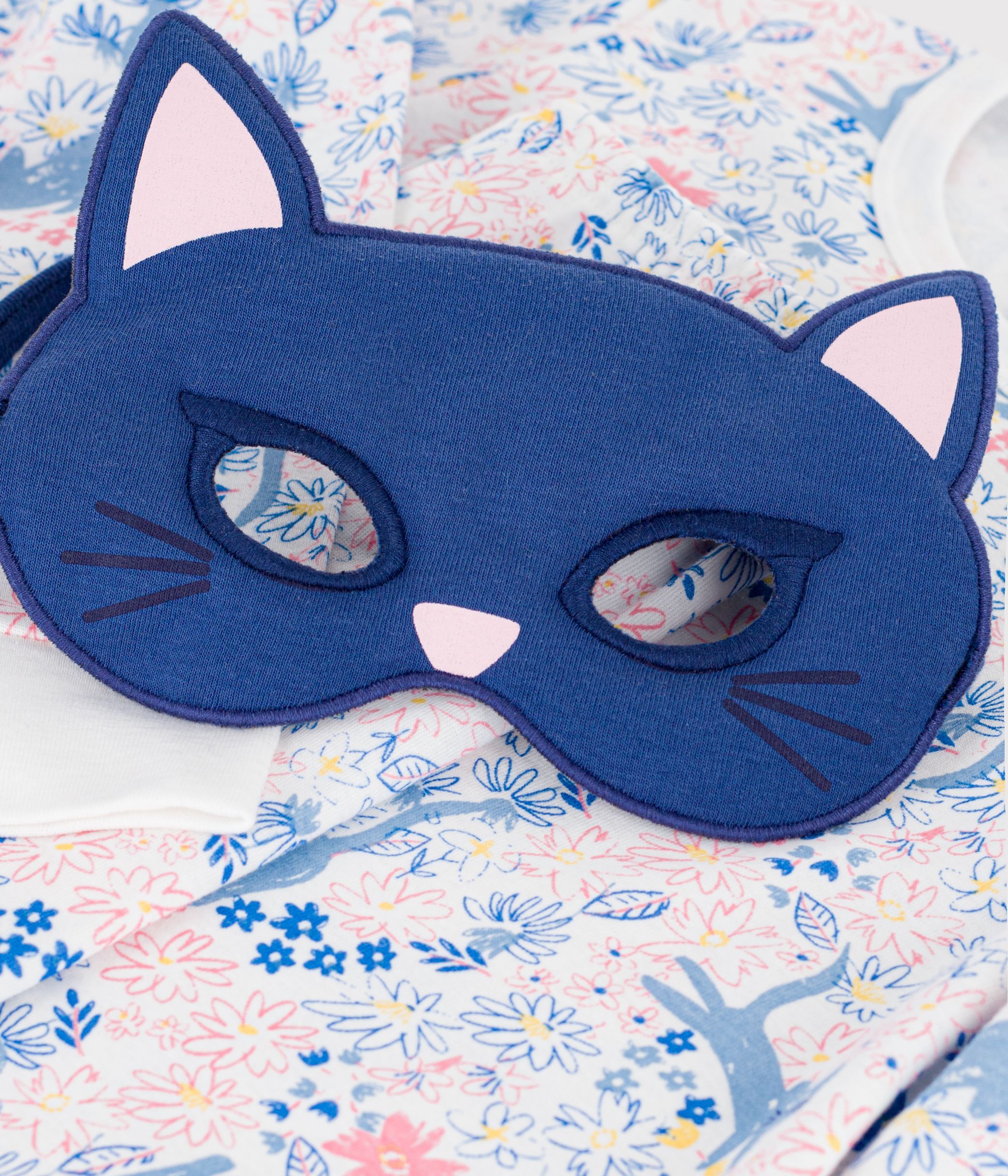 - Girls' pyjama pyjamas and cat mask in 1x1 rib knit, a comfortable, stretchy fabric