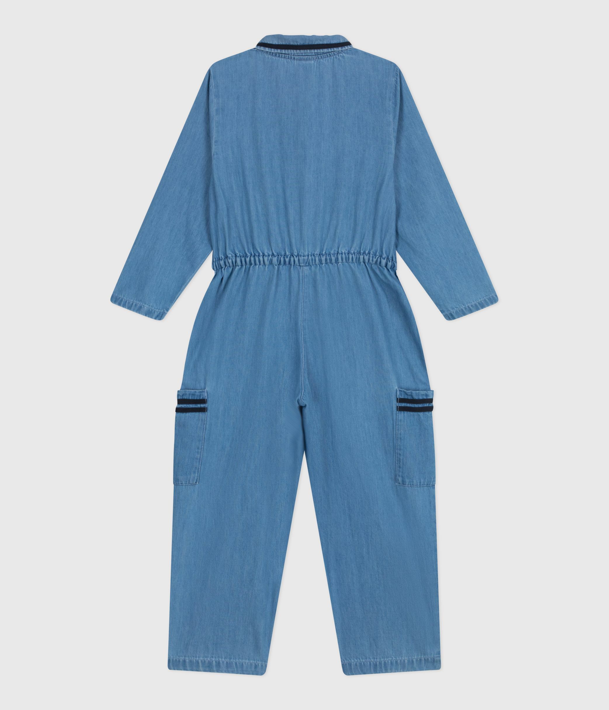 - Girls' jumpsuit with long sleeves in lightweight denim, a pleasant and supple fabric.