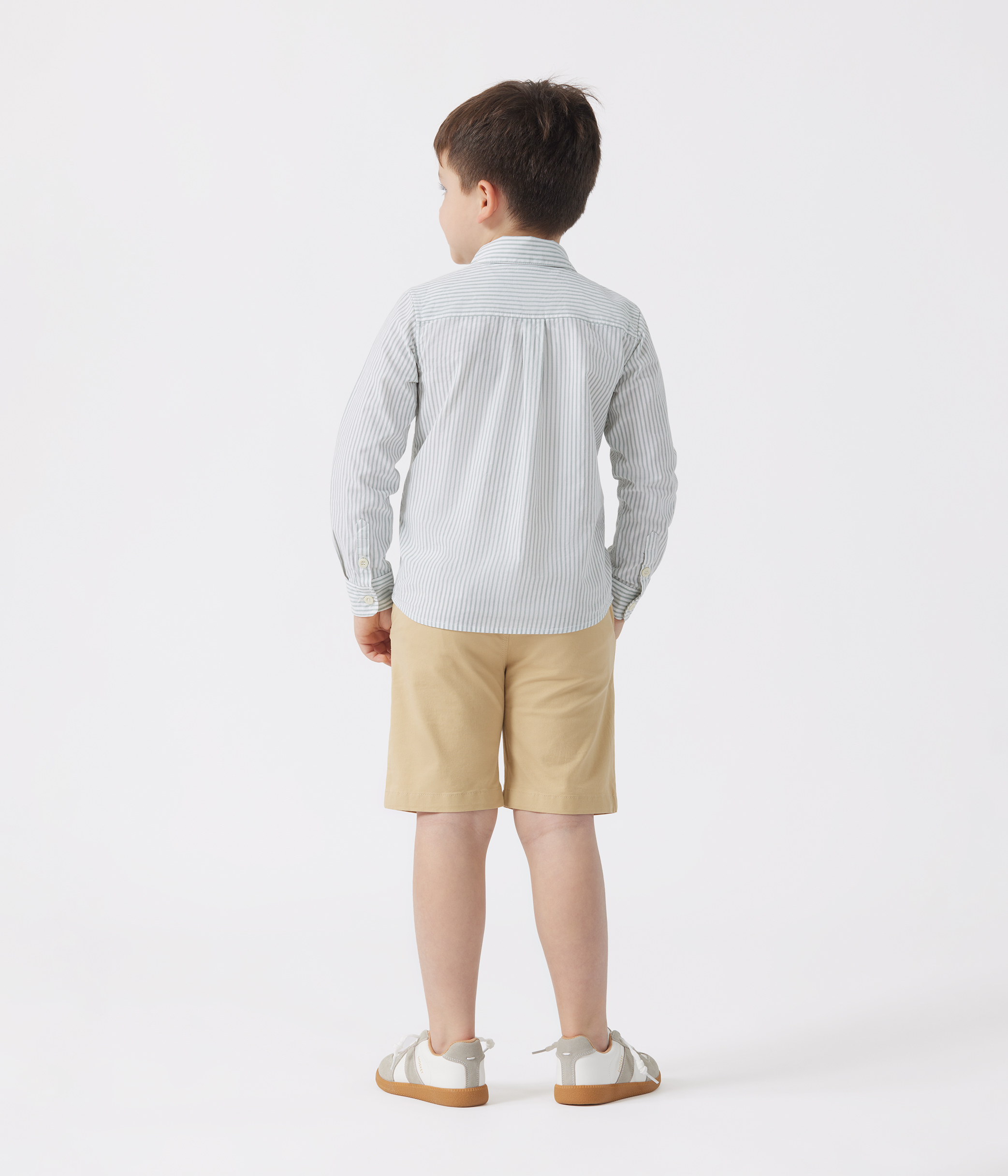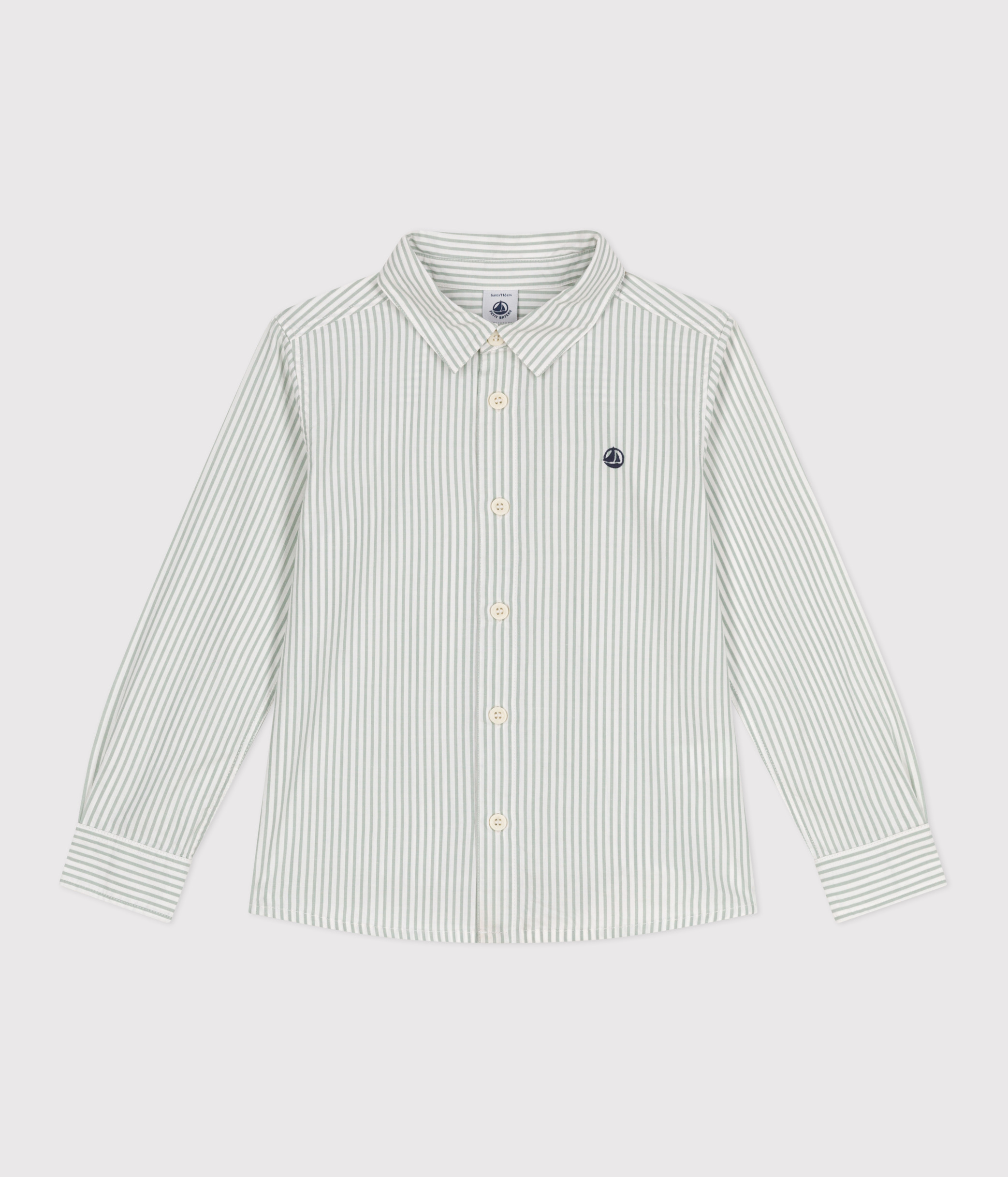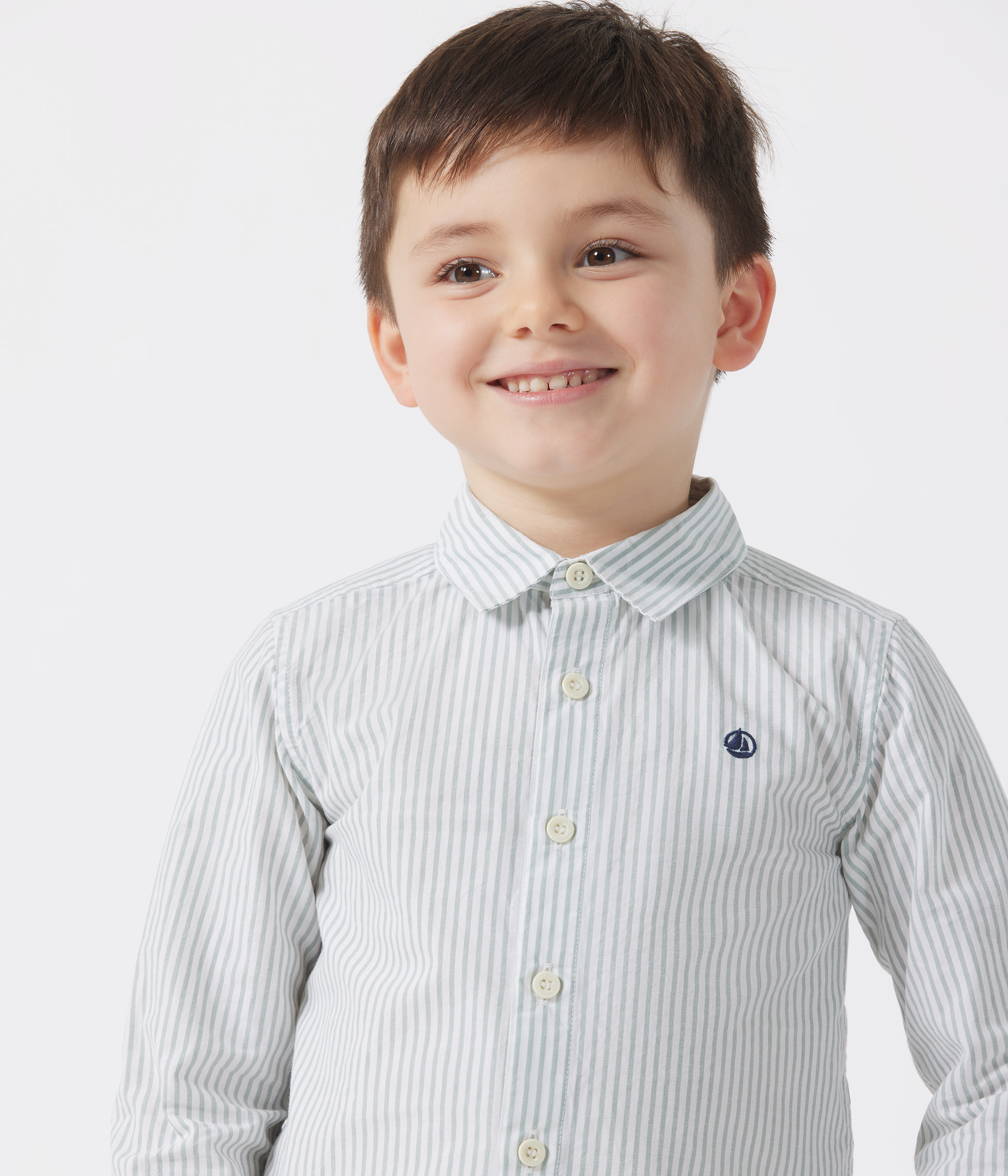 Boys' shirt in striped poplin, a fine, lightweight fabric.