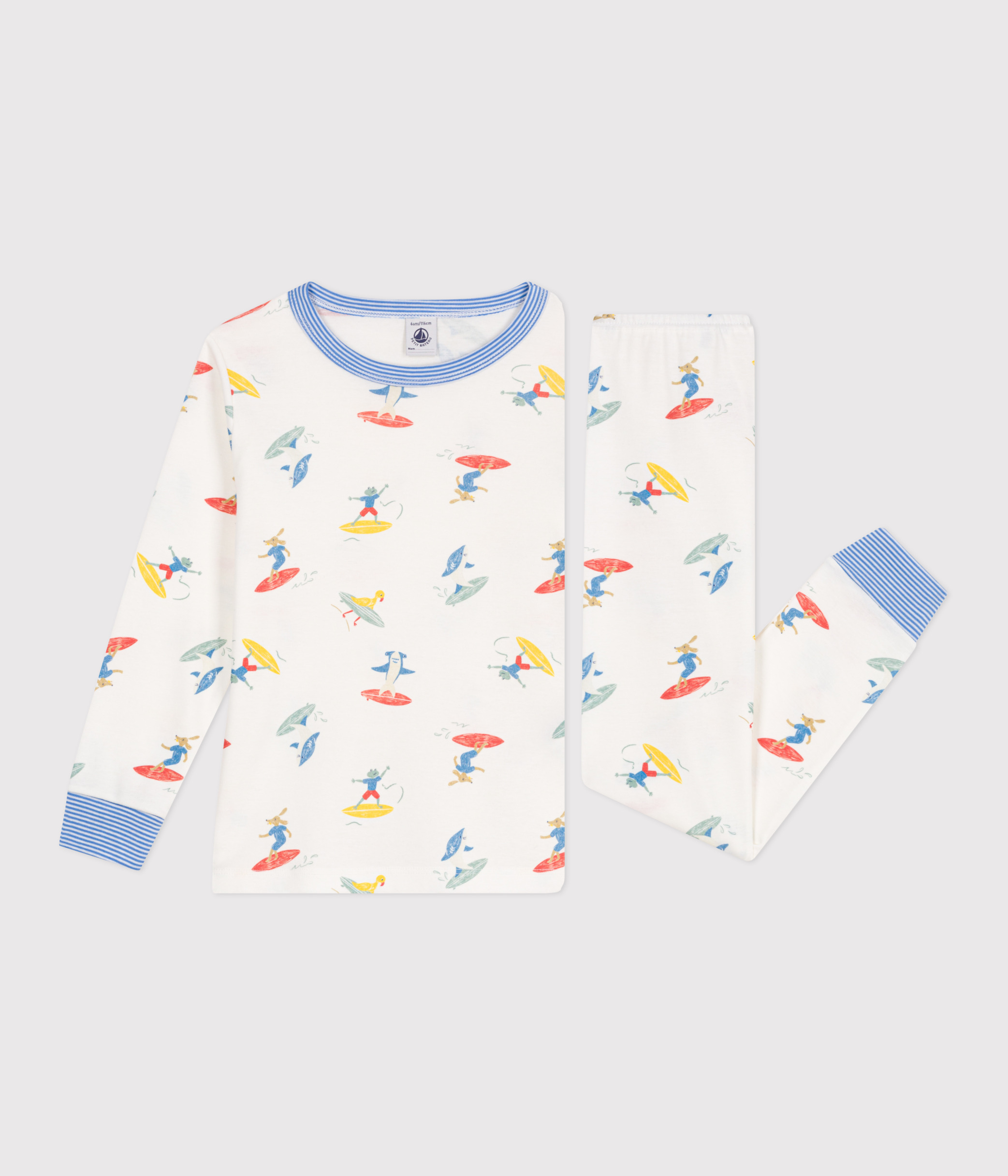- These pyjamas feature a playful, summery surf-themed print.