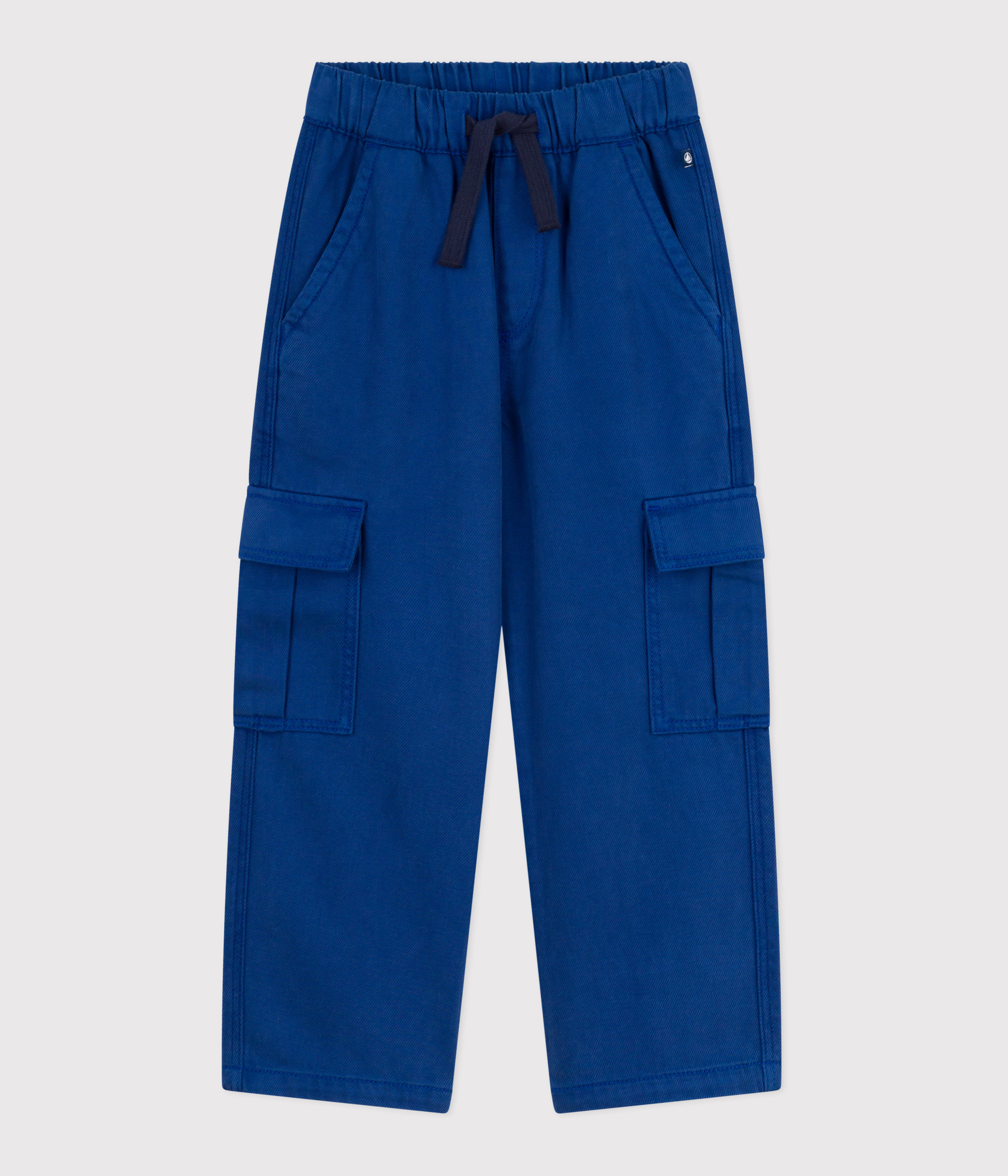 Cargo pants for boys in Lyocell and cotton, a fabric that holds its shape well and has a slightly faded effect.