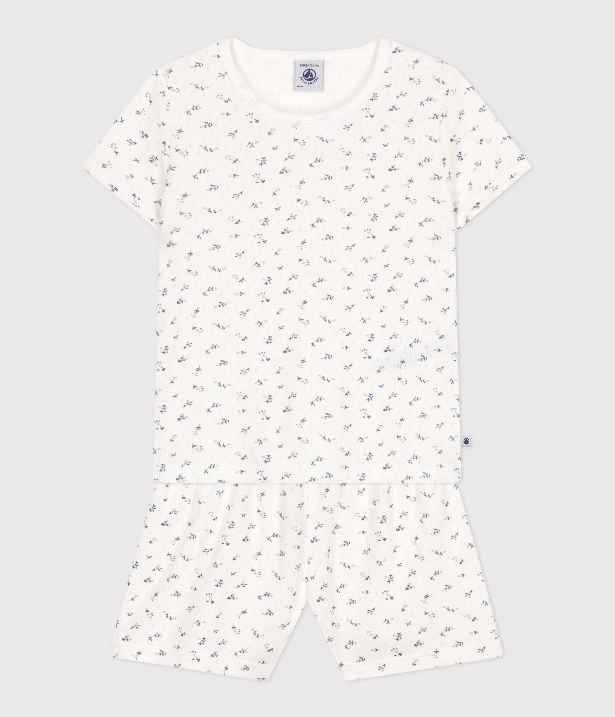 Children's short floral-print openwork cotton pyjamas