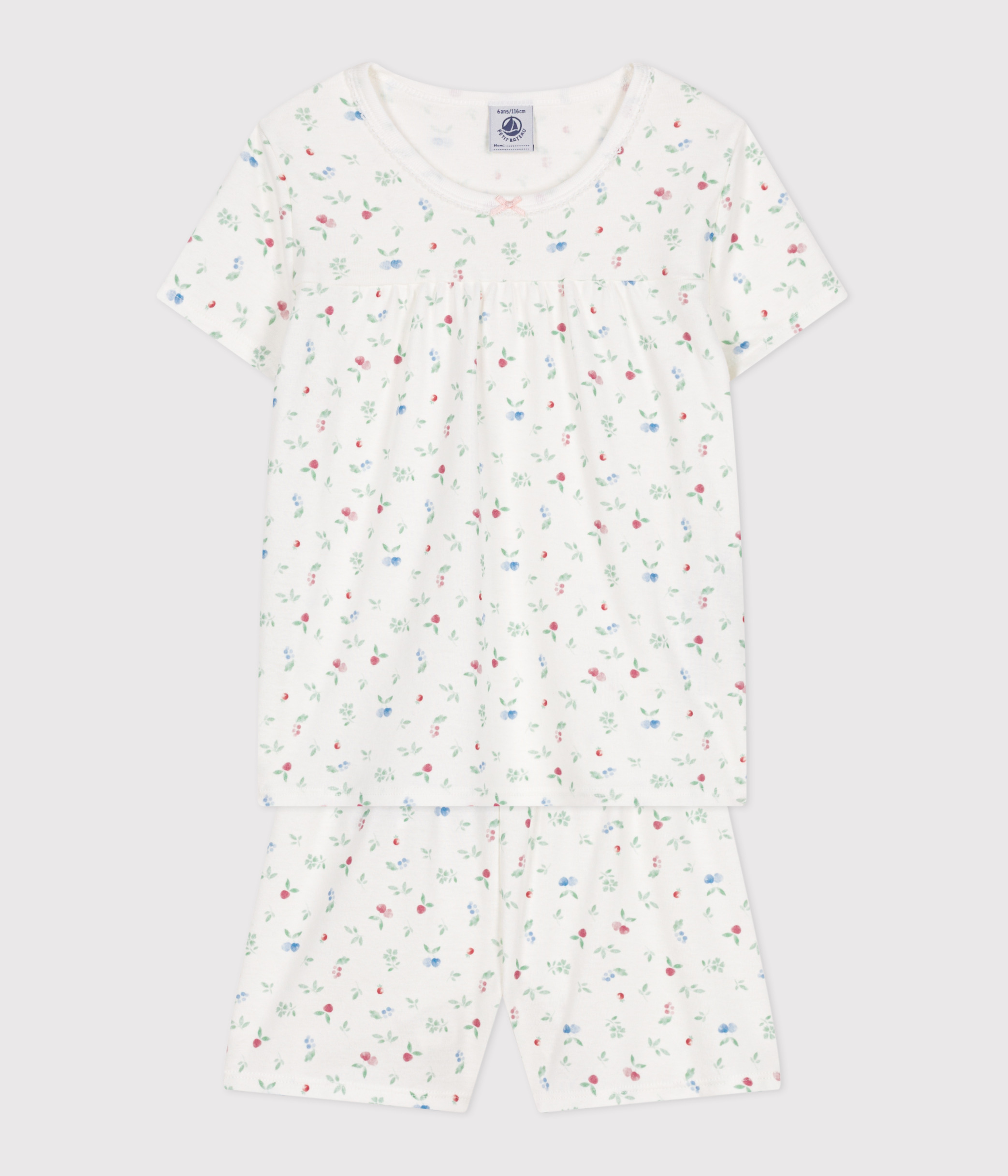 Girls' short pyjamas in 1X1 rib knit, a stretchy, comfortable fabric.