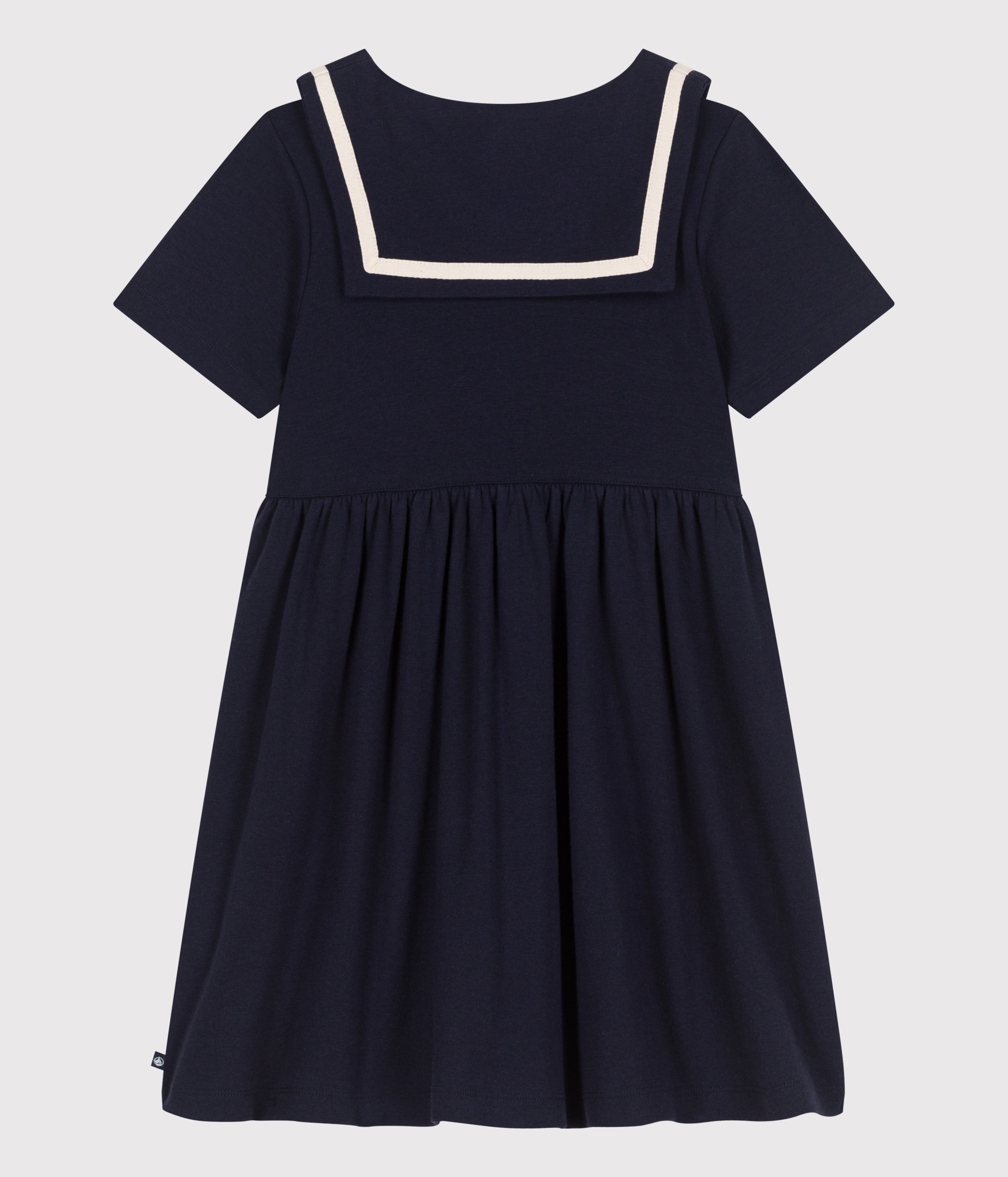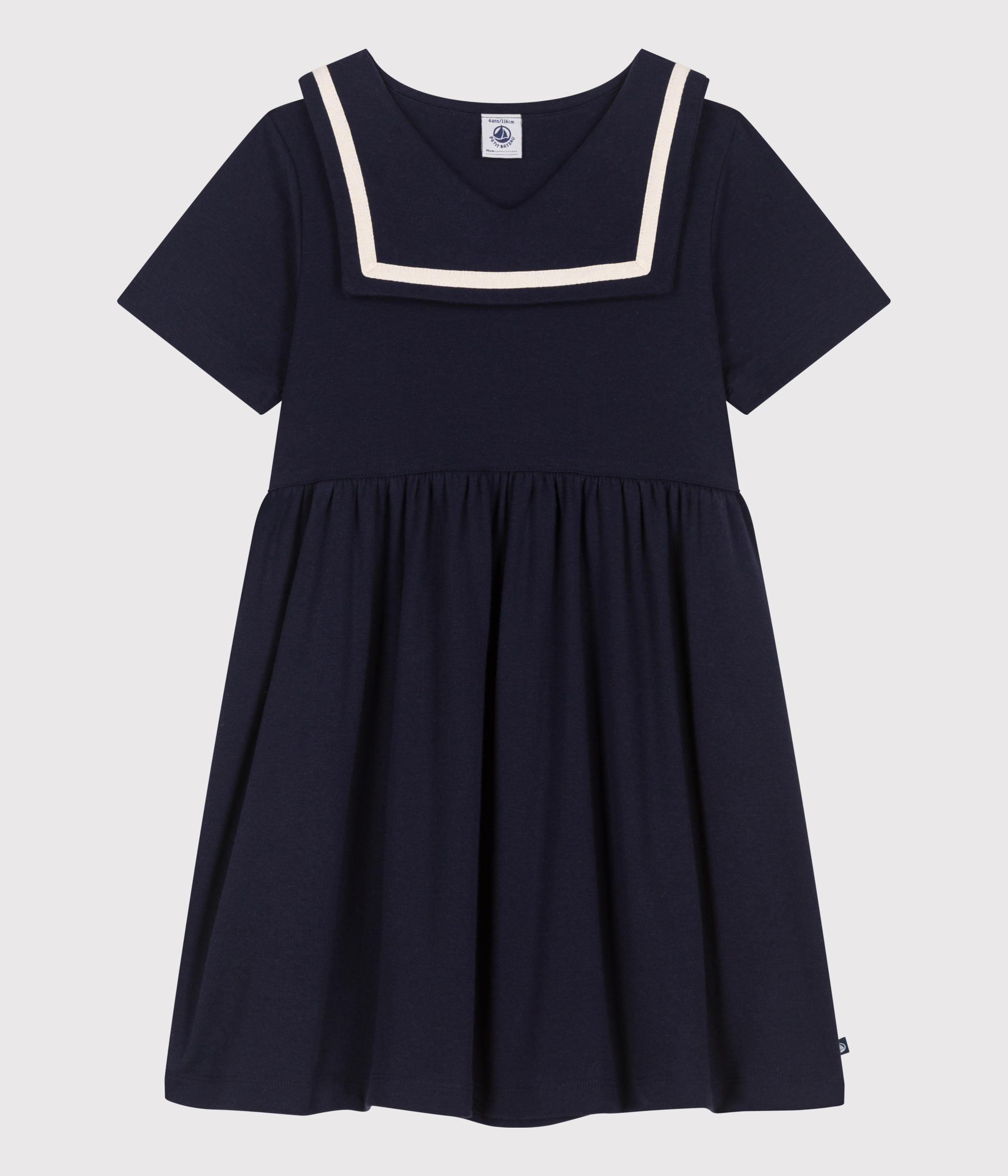 Girls' sailor-style T-shirt dress in 1x1 rib knit, a stretchy, comfortable fabric