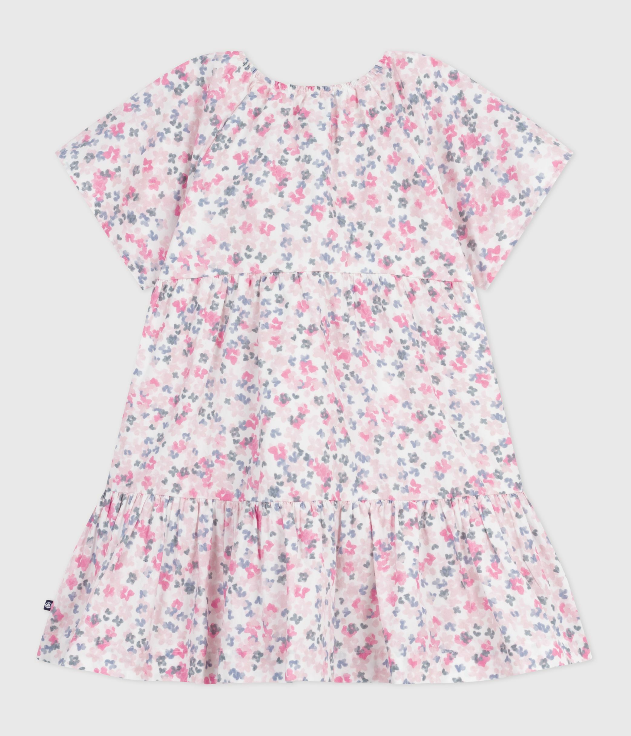 Girls' dress in floral-print poplin, a fine, lightweight fabric.