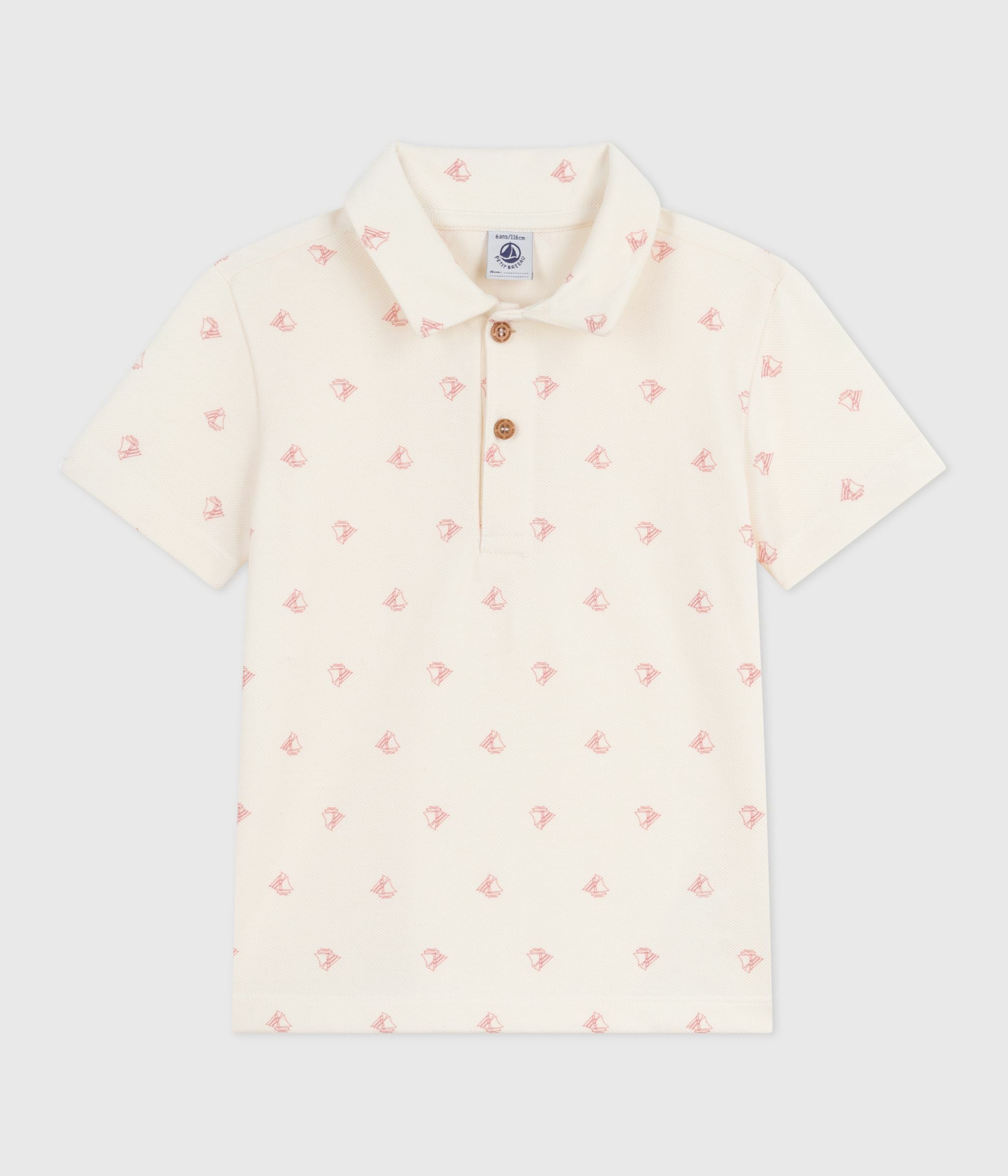 Boy's polo shirt in piqué jersey, a material with a rugged look that's emblematic of polo shirts.