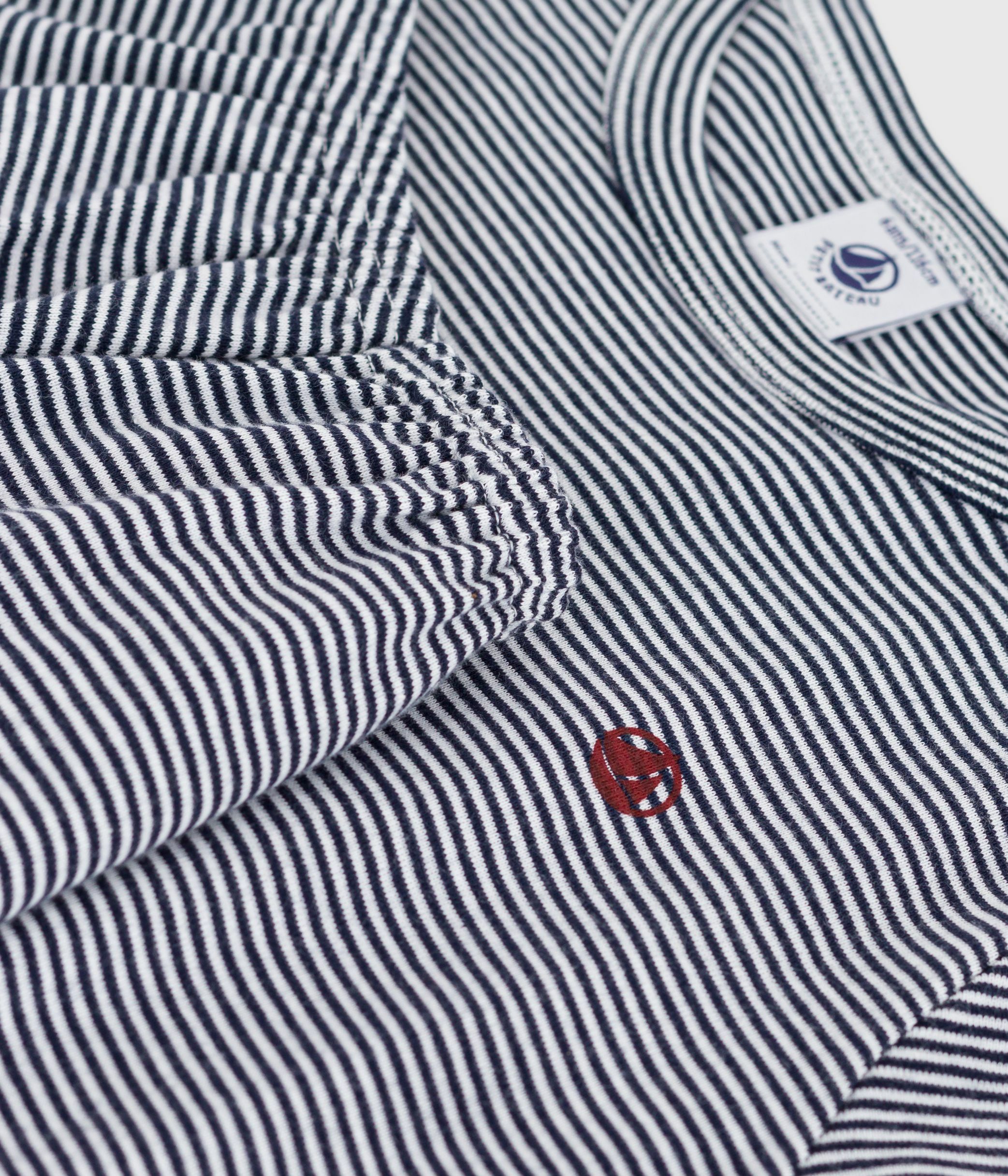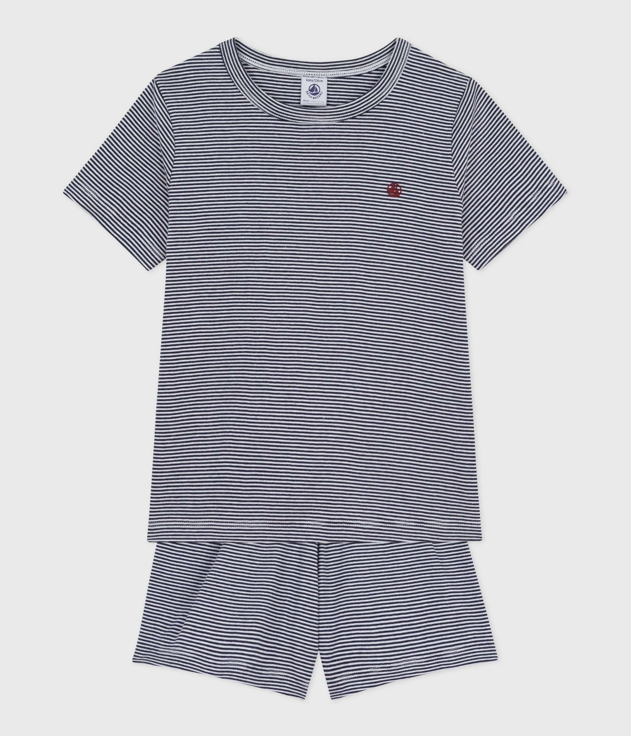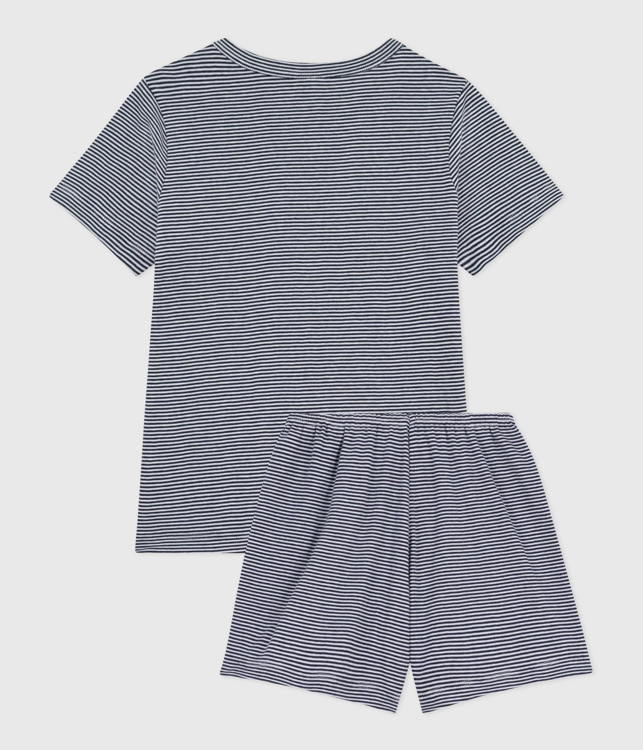 - Short pyjamas made from Petit Bateau's iconic blue pinstripe 1x1 rib knit fabric, which guarantees complete freedom of movement.