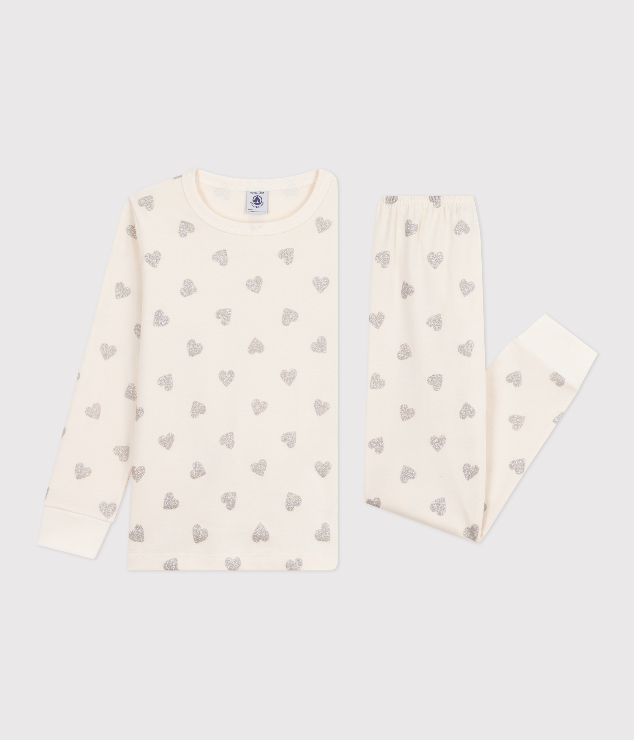 Children's silvery heart print cotton pyjamas
