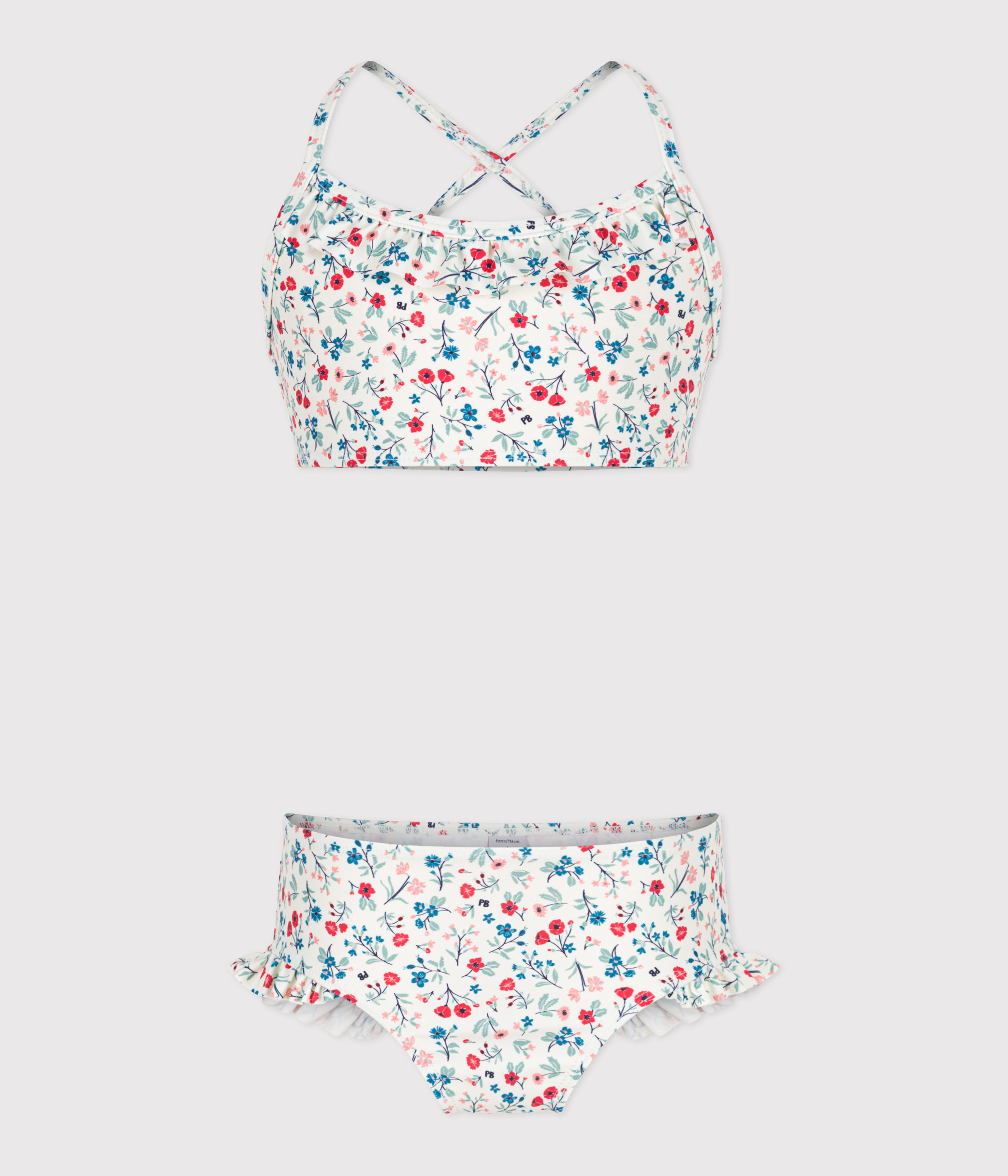 - The bottom has a classic panty shape, with ruffle details on the thighs.