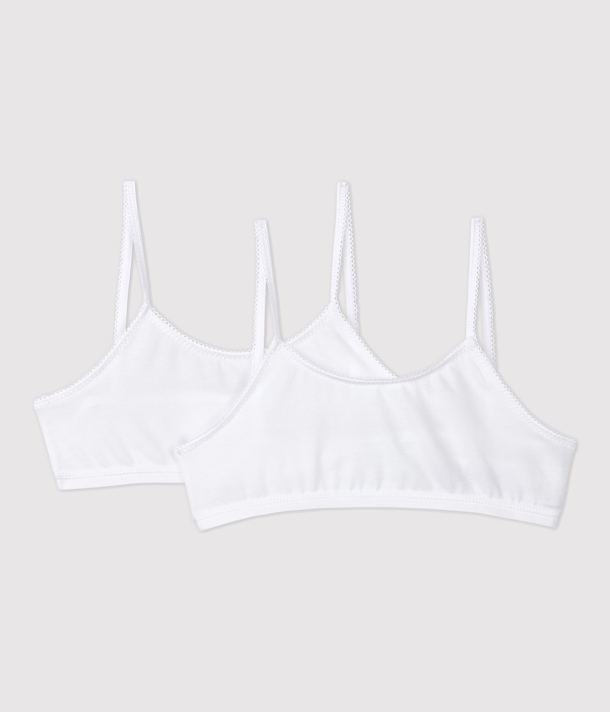- Two girls' bralettes in stretch cotton fabric for extra comfort.